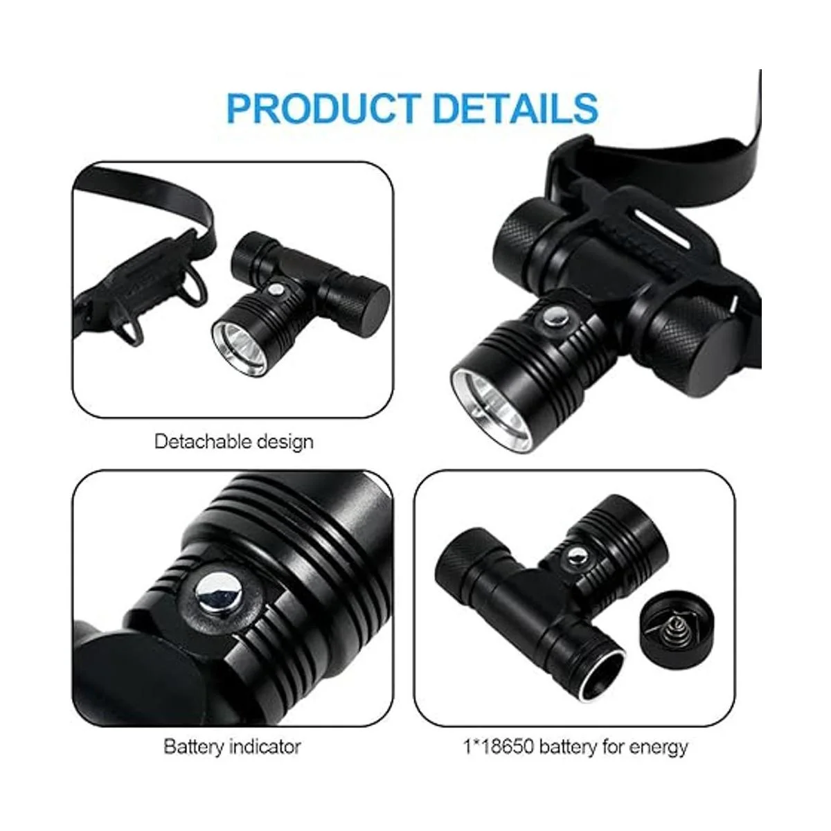 Faro de buceo profesional de 3 modos: utilizando LED CREE XML2 ultra brillante con una vida útil de hasta 100.000 horas, el brillo de salida puede llegar a un máximo de 10000 lúmenes, hasta 300 pies bajo el agua. Características con 3 modos de iluminación: alto bajo SOS, que pueden satisfacer todo tipo de necesidades.