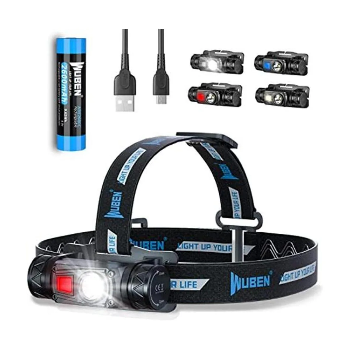 Faro LED súper brillante ajustable de 180: la linterna Wuben H1 utiliza faros LED Osram P9 súper brillantes con brillo de hasta 1200 lúmenes. La distancia de luz es de hasta 400 pies. Rango de luz más brillante y amplio que otros faros comunes. El cuerpo sólido del foco tiene un ángulo de haz ajustable de 180, lo que te permite enfocar la luz donde necesites que esté.