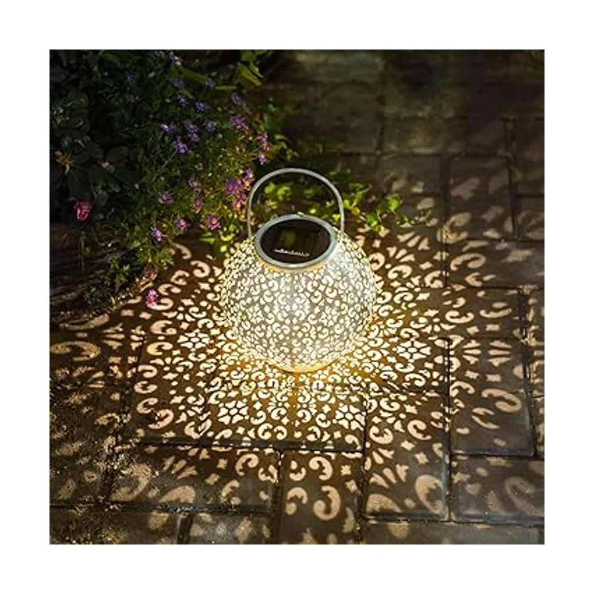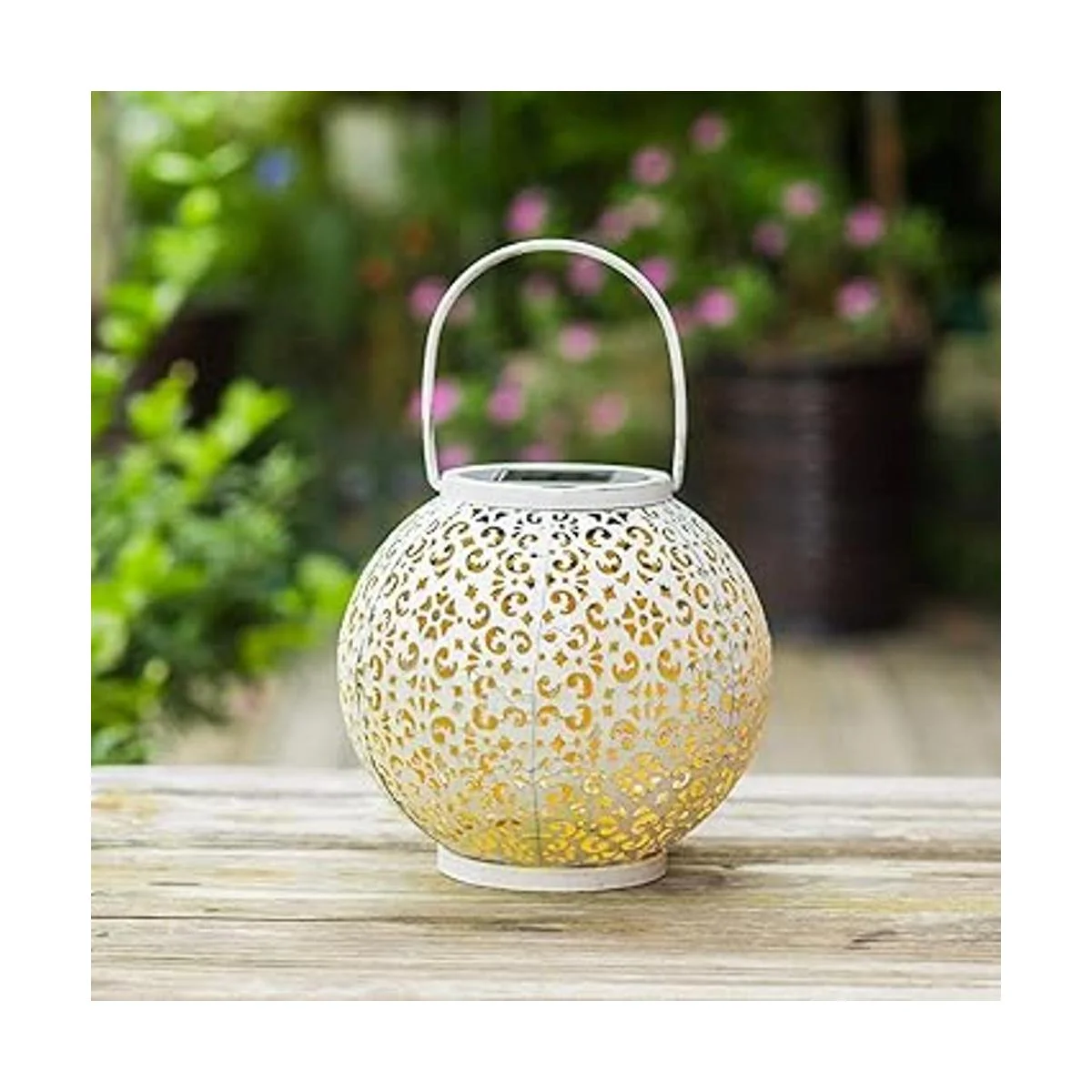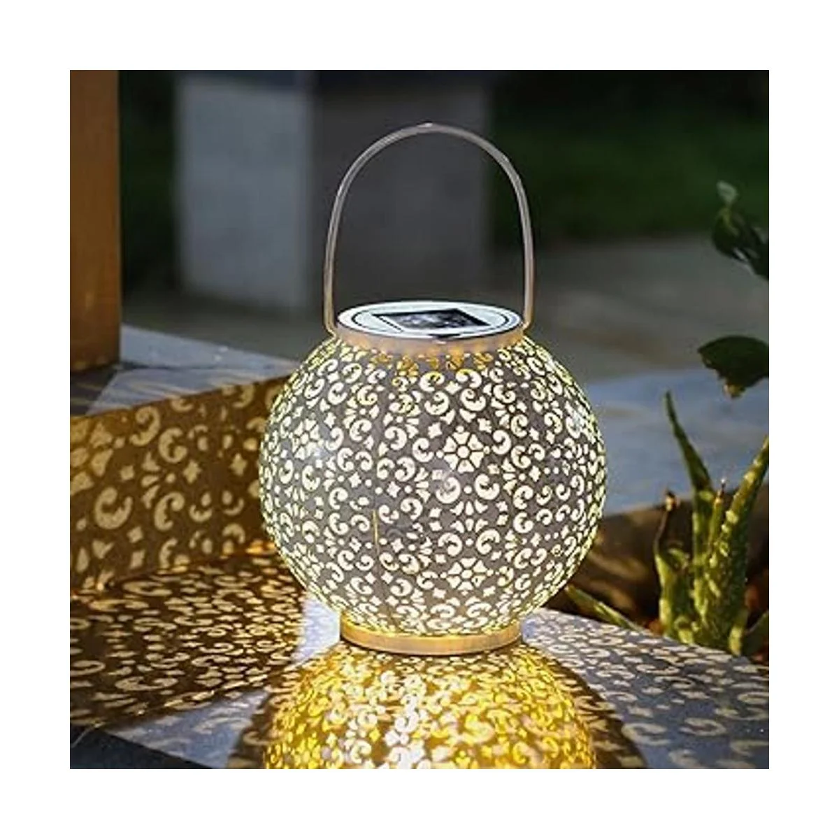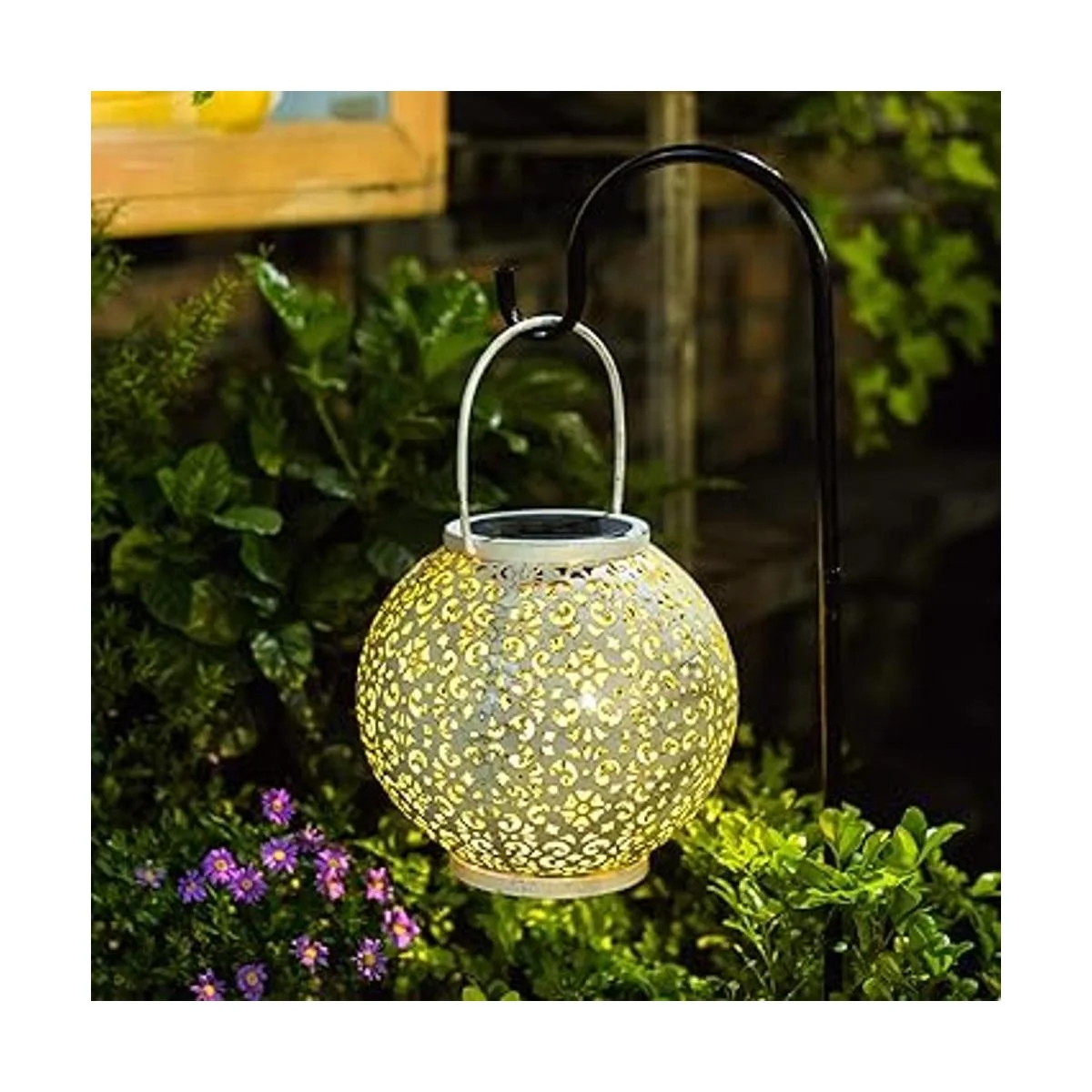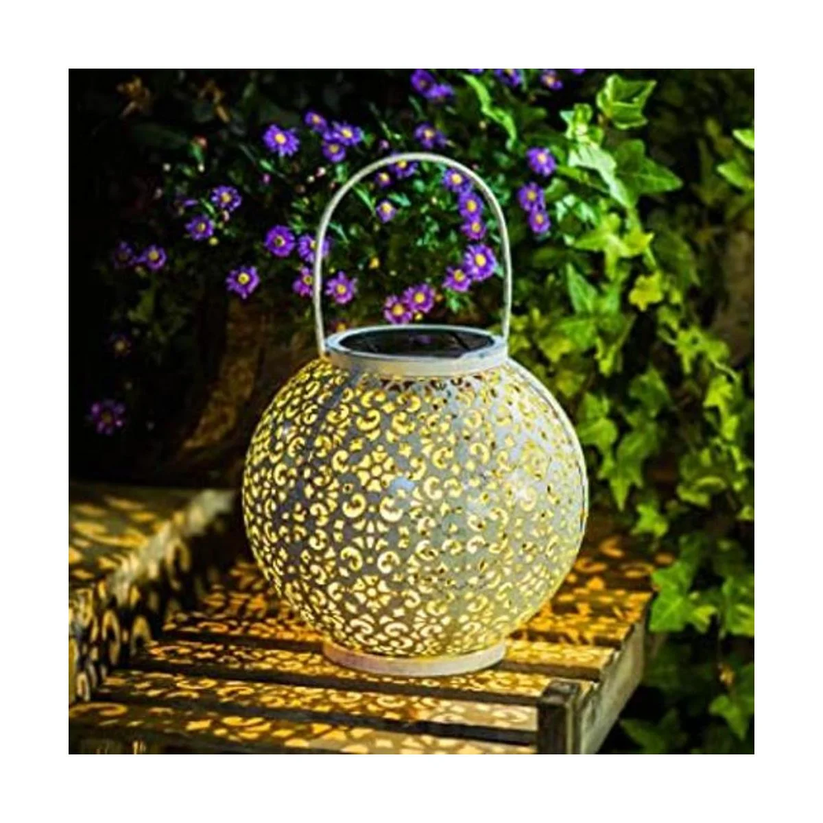 Farol grande solar, colgante, para jardín y uso al aire libre, de metal, impermeable, LED, lámpara de mesa decorativa azul