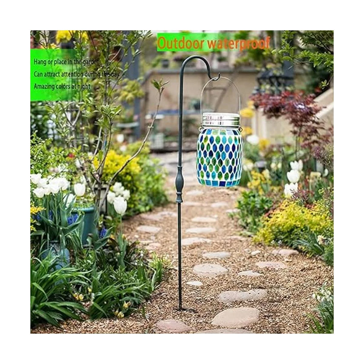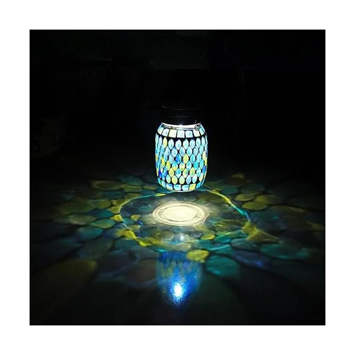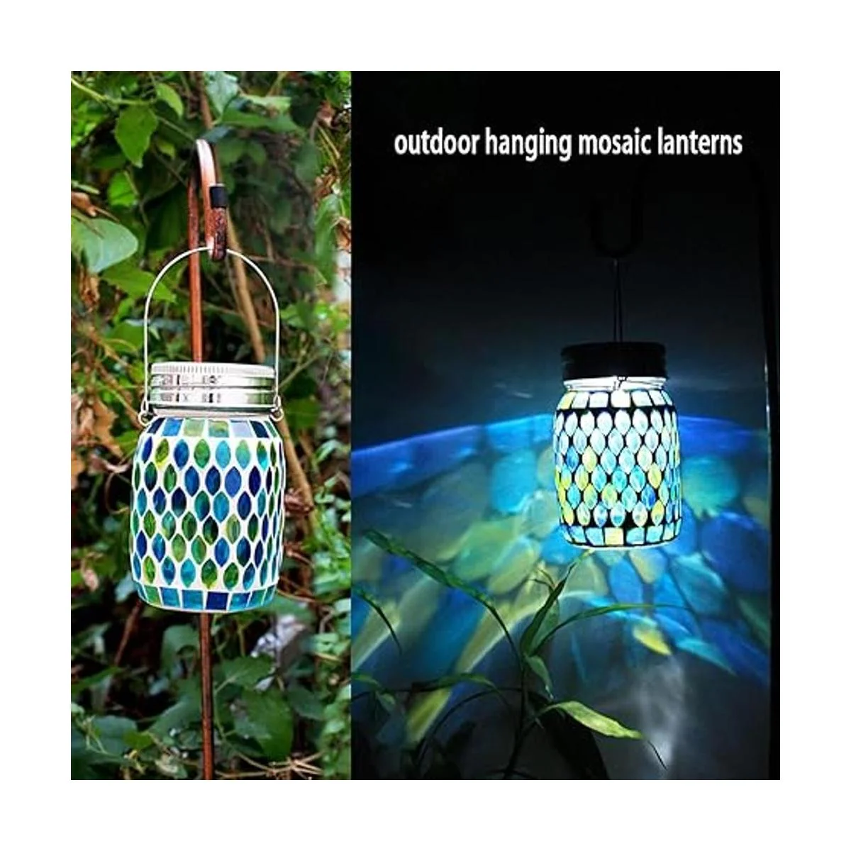 Faroles solares de mosaico, luces colgantes para exteriores, lámparas de mesa solares y luces de vidrio de mosaico de color azul frío, luces solares impermeables para exteriores, decoración de jardín, patio, camino y patio