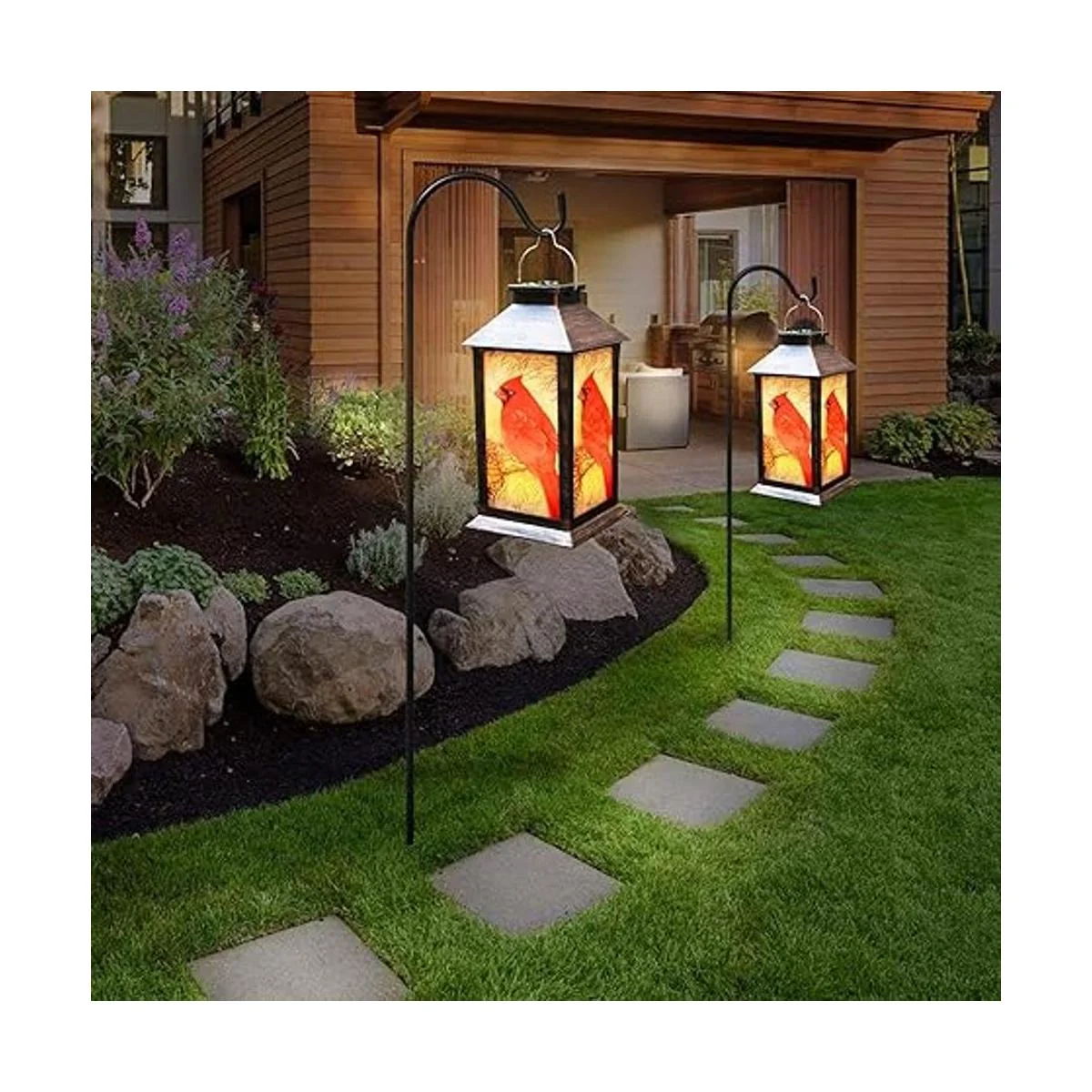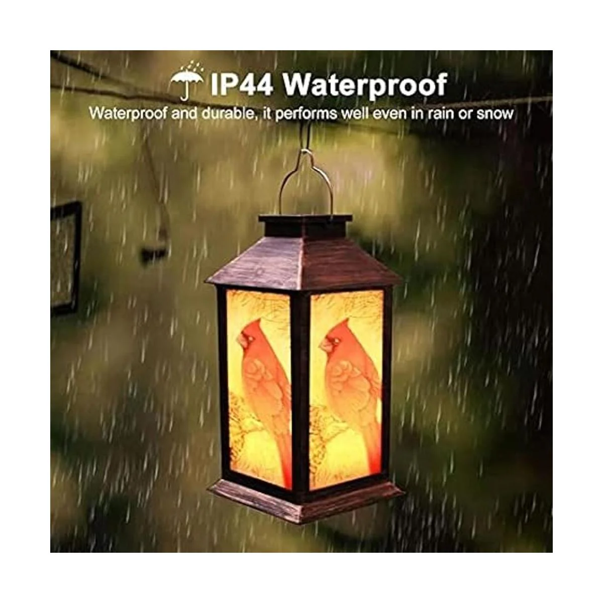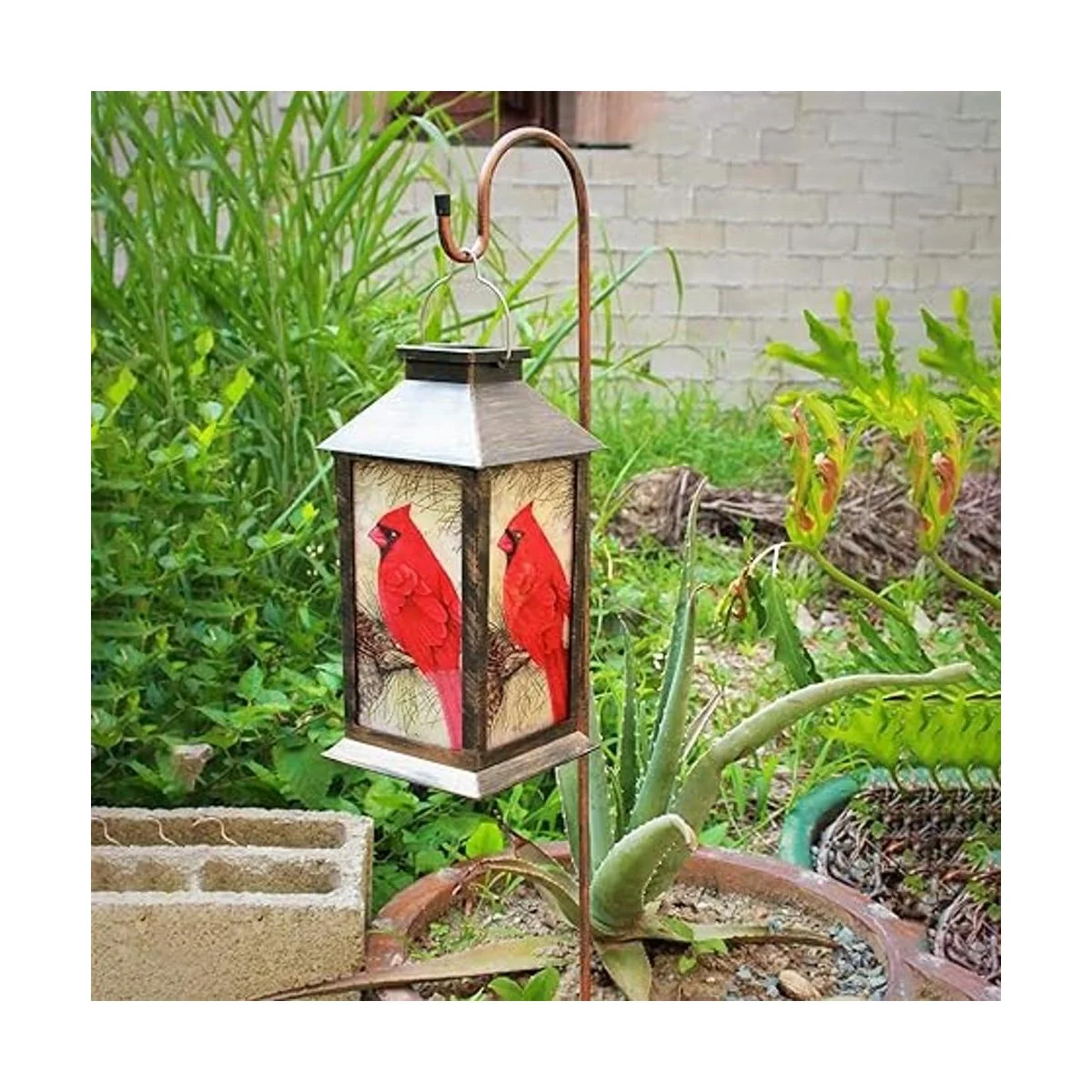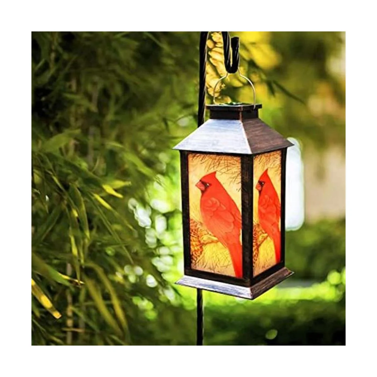 Linterna decorativa para exteriores: esta linterna solar para exteriores se coloca en cualquier superficie y se puede colgar en cualquier lugar de tu patio, fuera de un patio o en ganchos de pastor. El patrón de pájaro rojo es más vívido para hacer que tu patio sea más hermoso