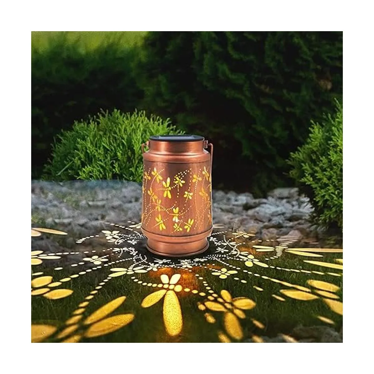 Material de alta calidad: la decoración de la linterna solar de libélula está hecha de metal respetuoso con el medio ambiente, la superficie ha sido endurecida, resistente al agua y tratada anticorrosión, que tiene un estilo retro y puede mantener el producto bien al aire libre durante mucho tiempo. Ya sea viento, lluvia o nieve.