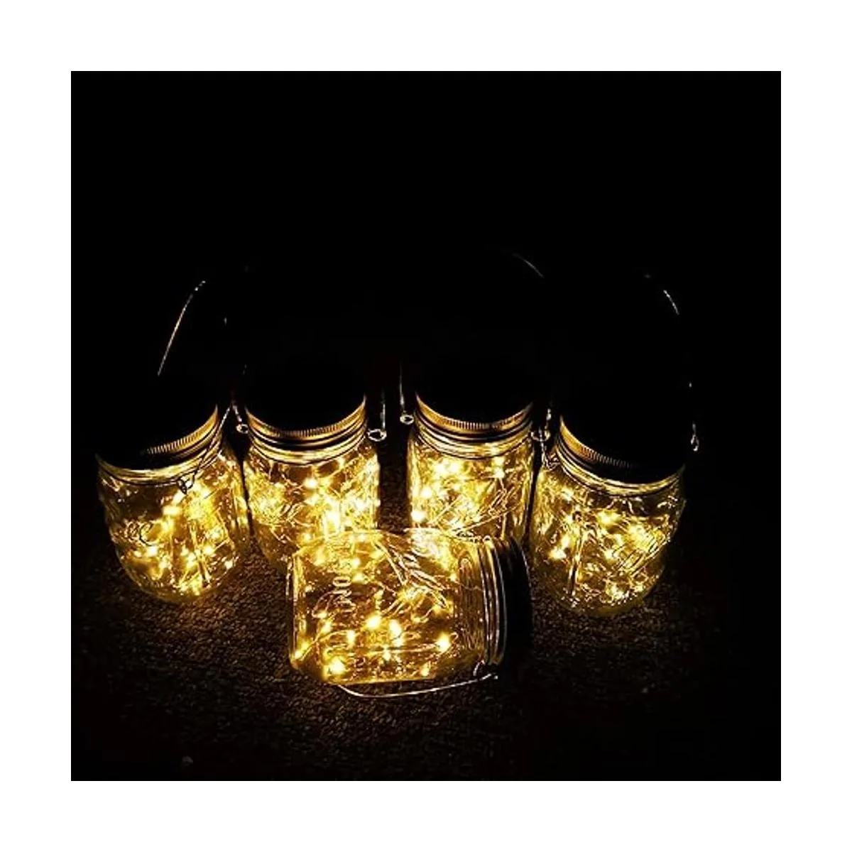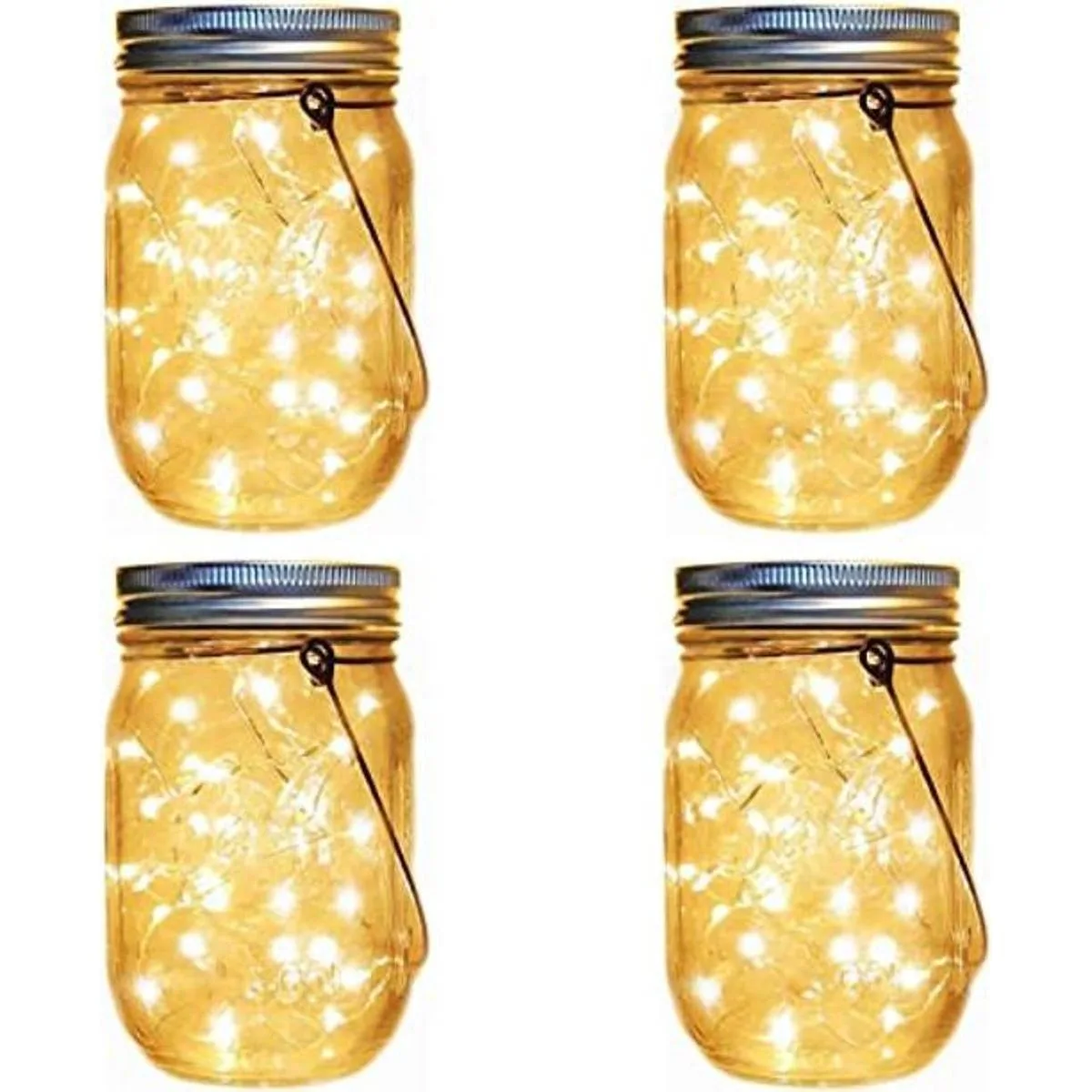 Faroles solares para colgar en tarro de masón, paquete de 4 30 luces LED, cadena de luces de hadas luciérnaga estrellada tarros de masón incluidos, para patio, jardín, mesa de boda, decoración de tarro de masón, luces solares de farol