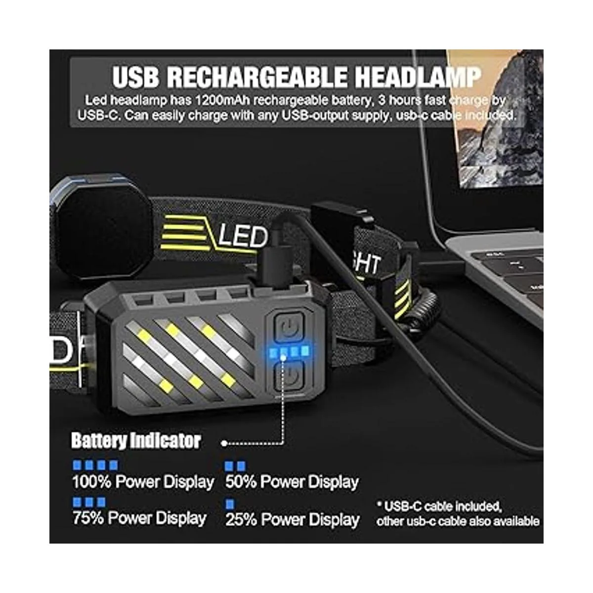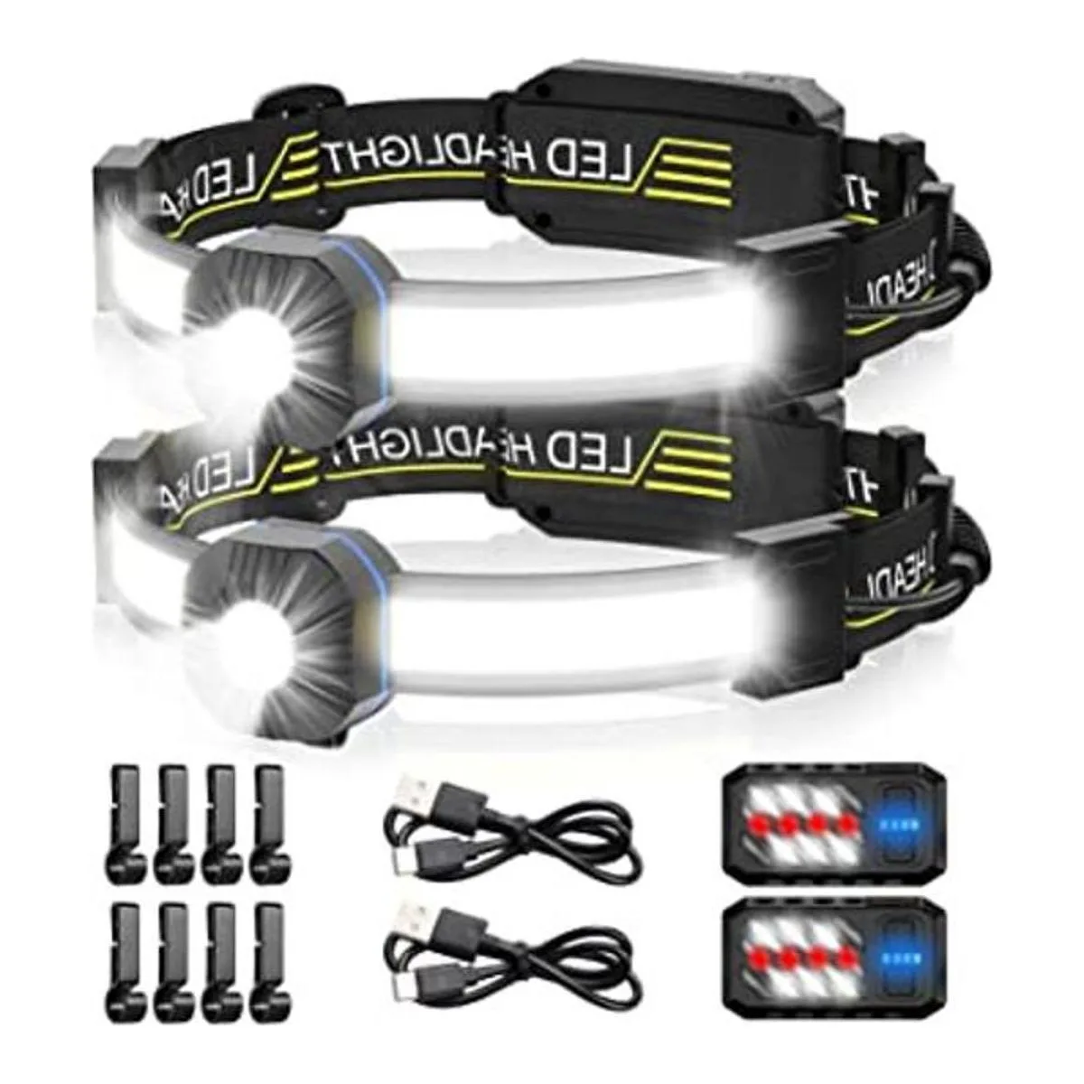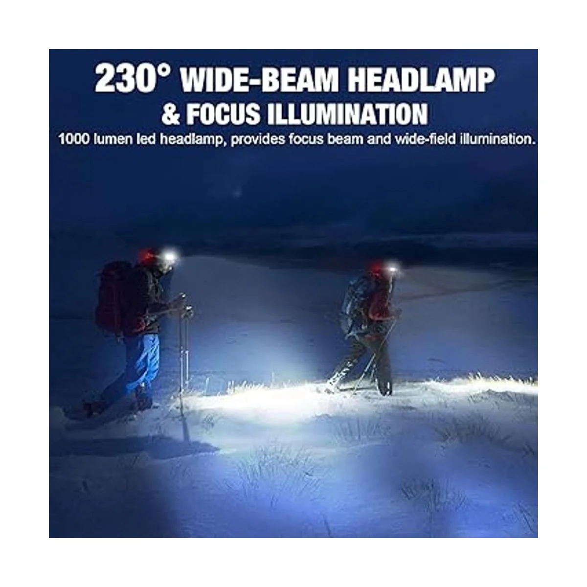 Faros delanteros LED, 1000 lúmenes, luz ancha de 230, recargable por USB, con luz trasera roja, ligera e impermeable, para acampar, correr, senderismo, faro de sombrero duro