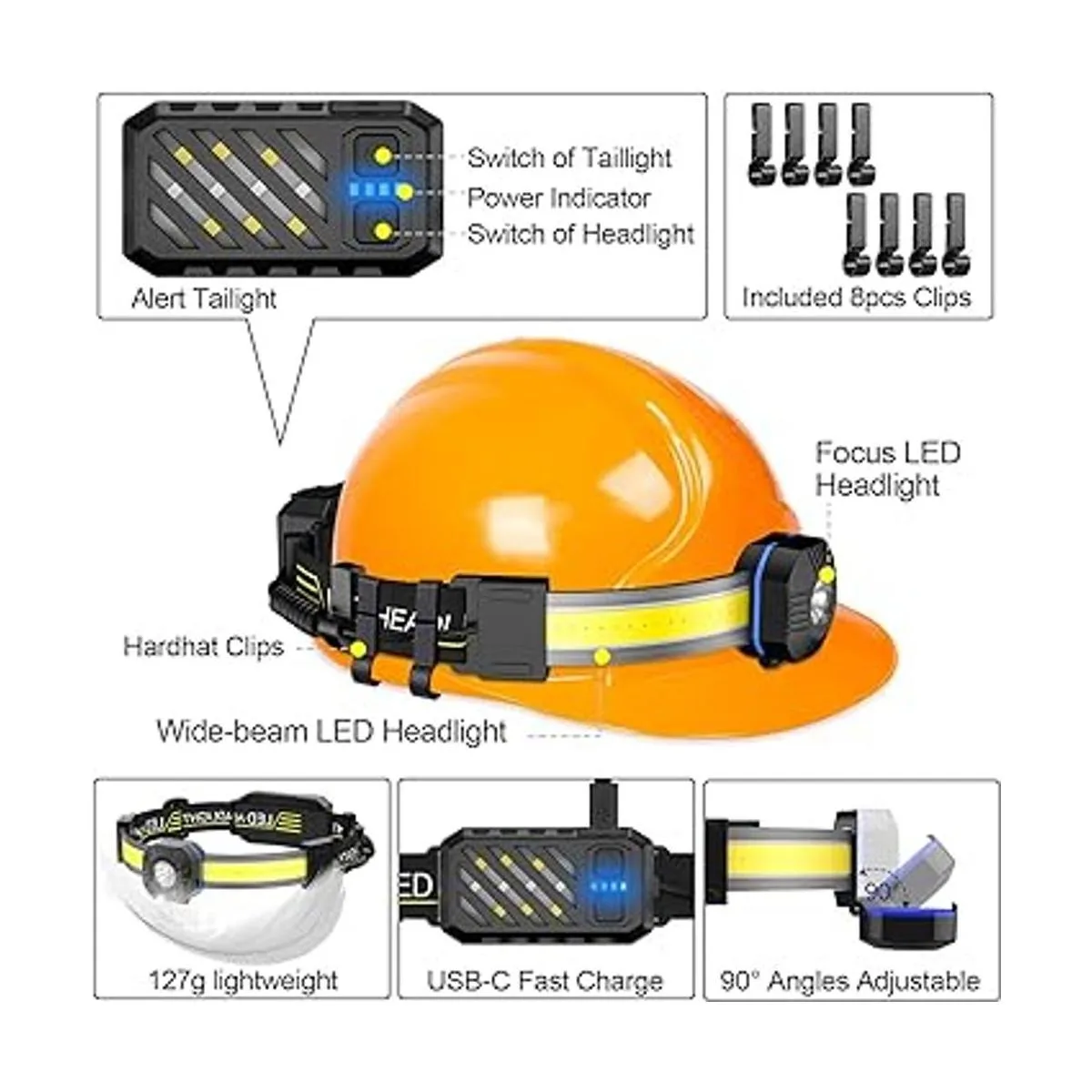 Impermeable, ligera, cómoda: esta luz LED para diadema pesa solo 4.4 onzas, es transpirable y antideslizante, adecuada para llevar con casco duro, casco. A diferencia de los faros delanteros tradicionales, son voluminosos y pesados, nuestro faro es ligero, cómodo de llevar, no sentirás que se mueve incluso si estás corriendo, más como si llevas una gorra de béisbol y luego un faro. No se desliza fácilmente incluso se moja.