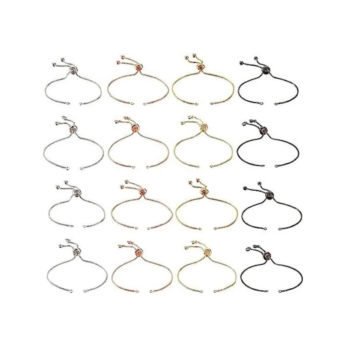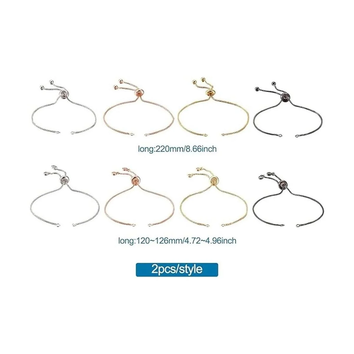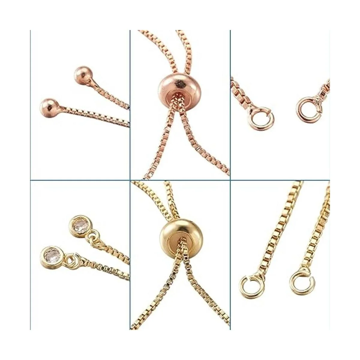 Diseño ajustable: las cadenas de pulsera deslizantes con deslizador para ajustar la circunferencia para adaptarse al tamaño de tu muñeca. Un extremo de cada cadena con un anillo abierto, puedes añadir algunos suministros de joyería que desees, como cuentas, piedras preciosas en los dos lados para conectar.