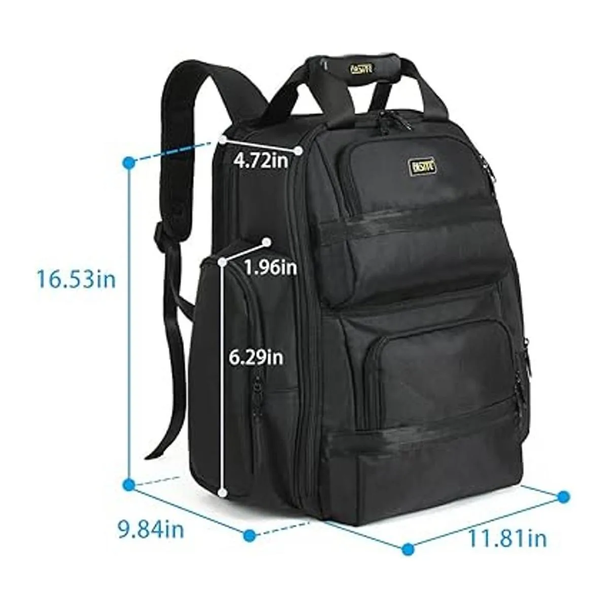 FASITE Mochila de almacenamiento profesional y organizador para contratistas, electricistas, fontaneros, HVAC, gran solapa frontal para portátiles de 13 a 17 pulgadas, color negro