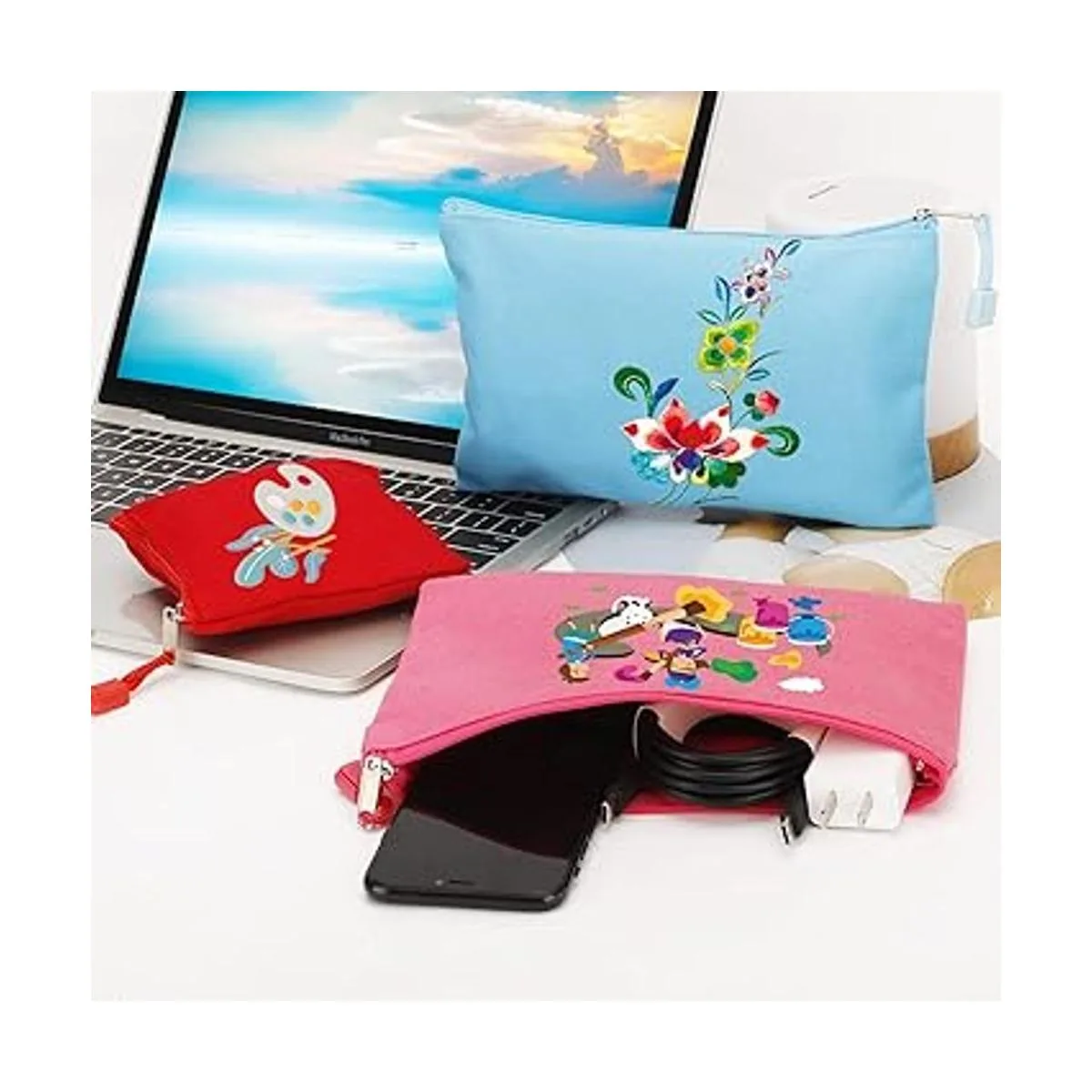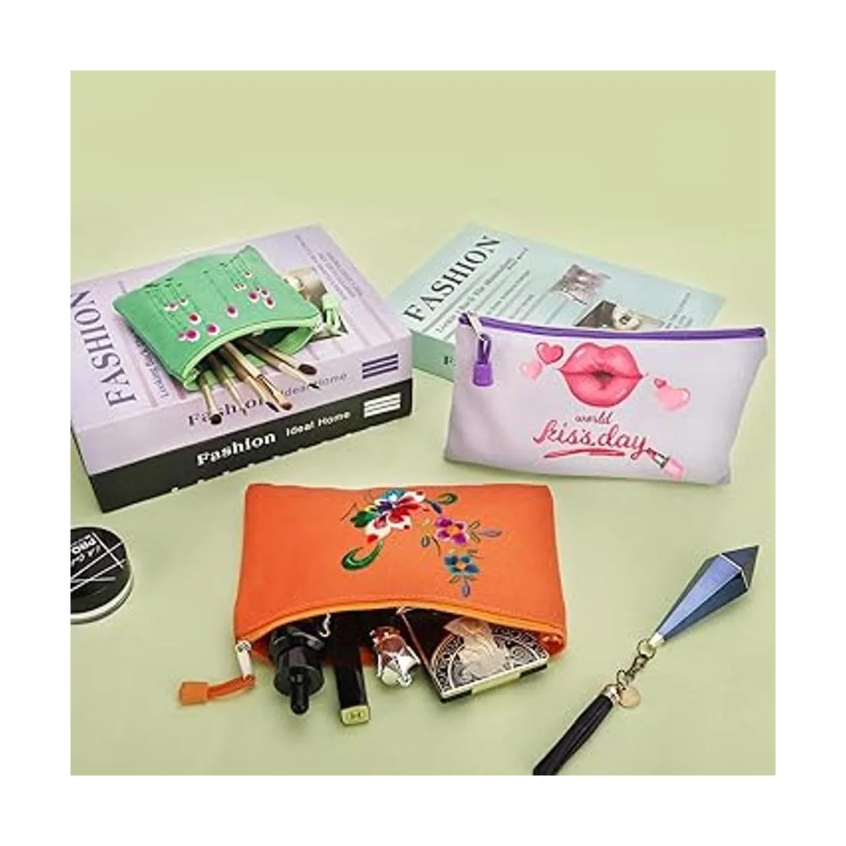 Fassave Paquete de 12 bolsas de lona de algodón para manualidades, bolsa de cosméticos multiusos, bolsas de maquillaje con cremallera, bolsa de aseo de viaje, bolsa para lápices, Varios colores, Bolsa de lona