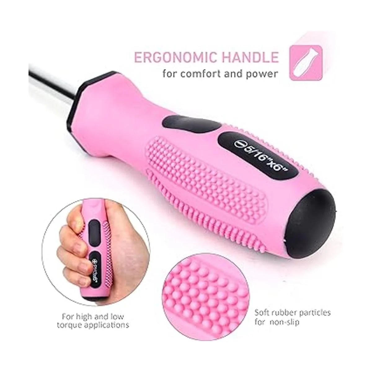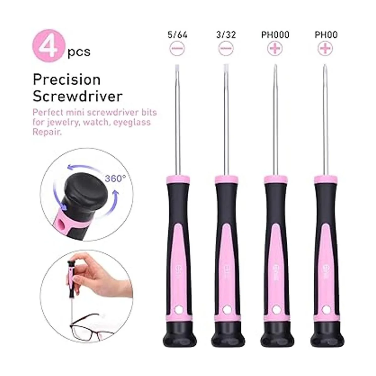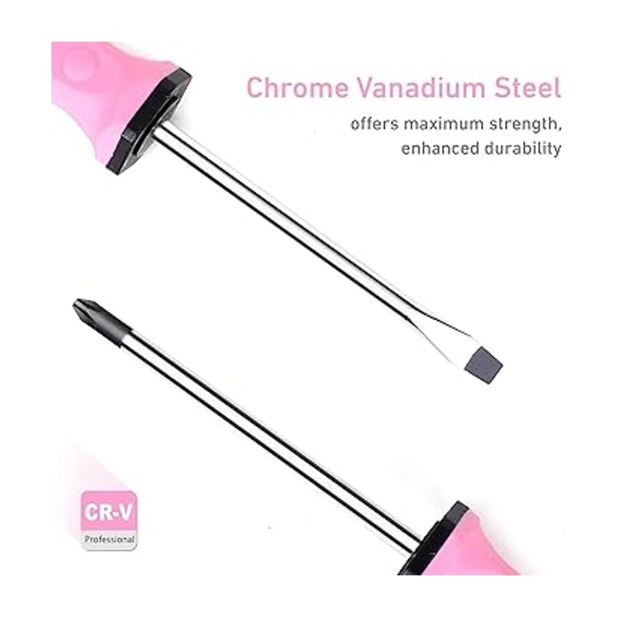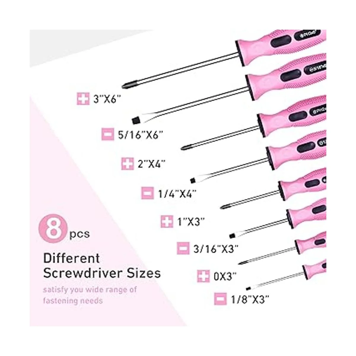 FASTPRO Juego de destornilladores magnéticos rosados de 12 piezas con destornilladores Phillips ranurados y destornilladores de precisión, kit de herramientas de reparación para mujeres con bolsa de almacenamiento