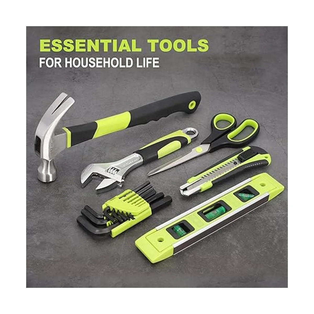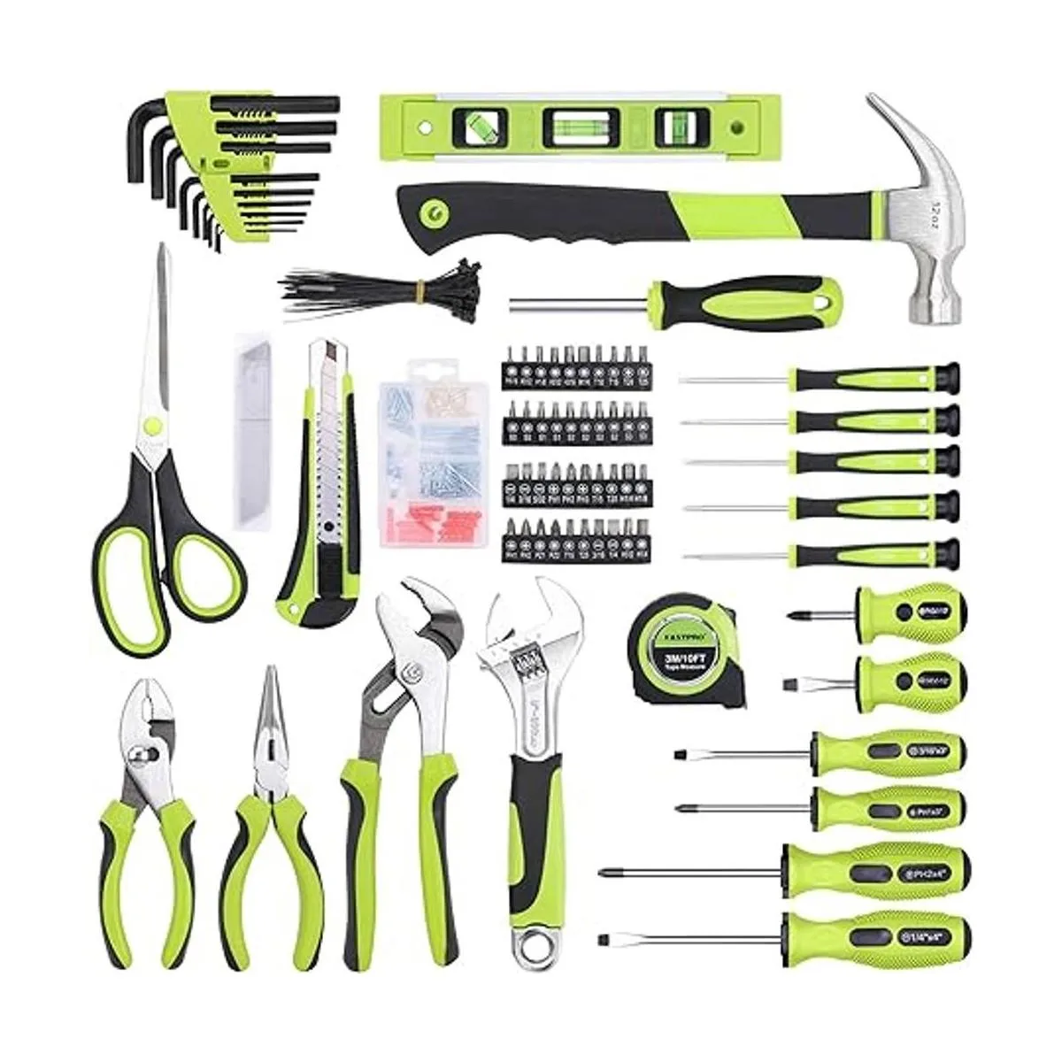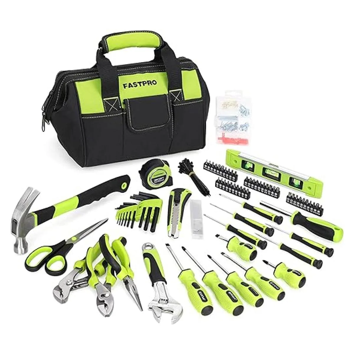 FASTPRO Juego de herramientas para el hogar de 220 piezas, kit de herramientas de reparación doméstica, con bolsa de herramientas de almacenamiento abierta de boca ancha, verde