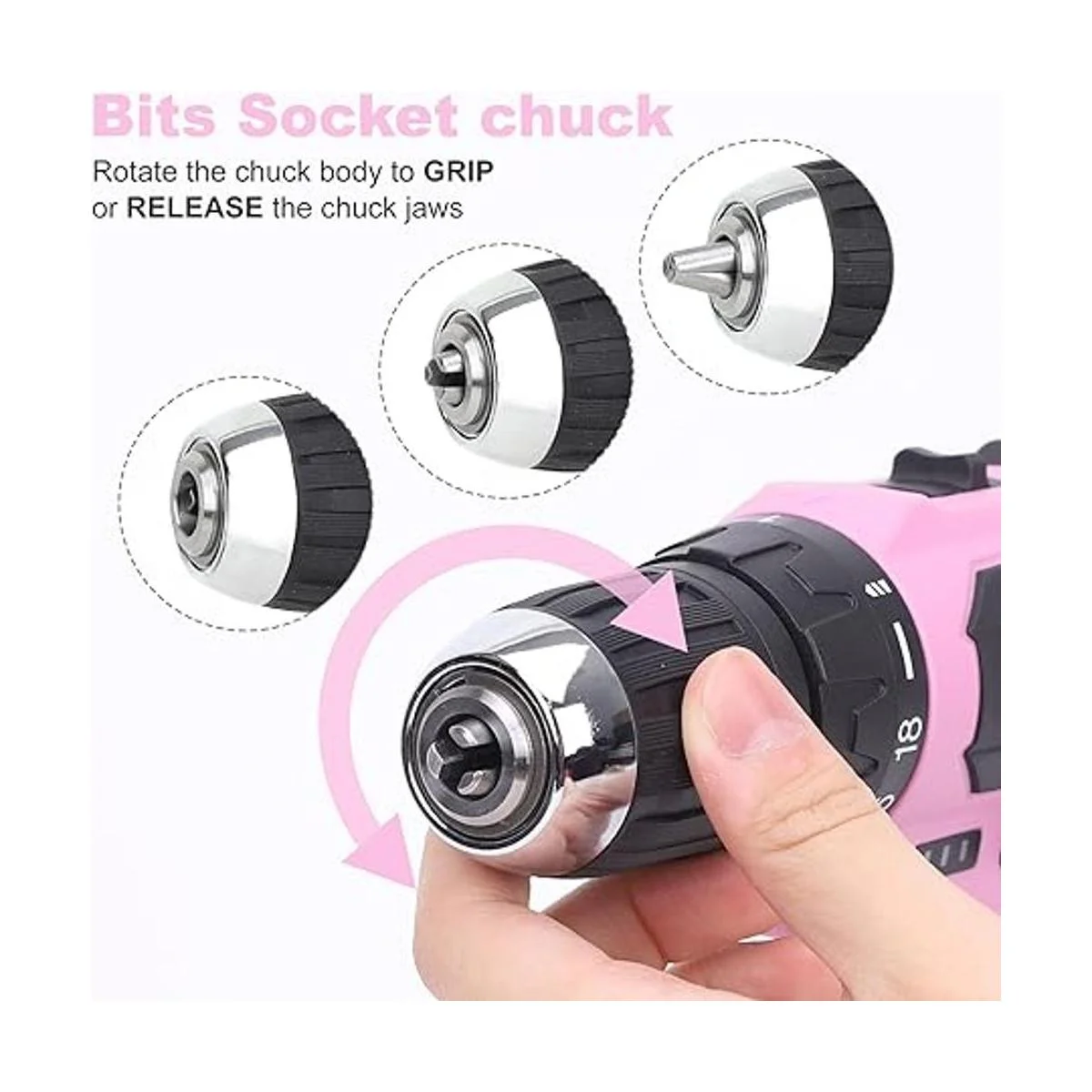 Diseño compacto y ligero: el juego de taladros rosa para wowen permite a los usuarios realizar tareas de perforación/conducción en espacios reducidos y ofrece a los usuarios una mayor comodidad y eficiencia en el lugar de trabajo.