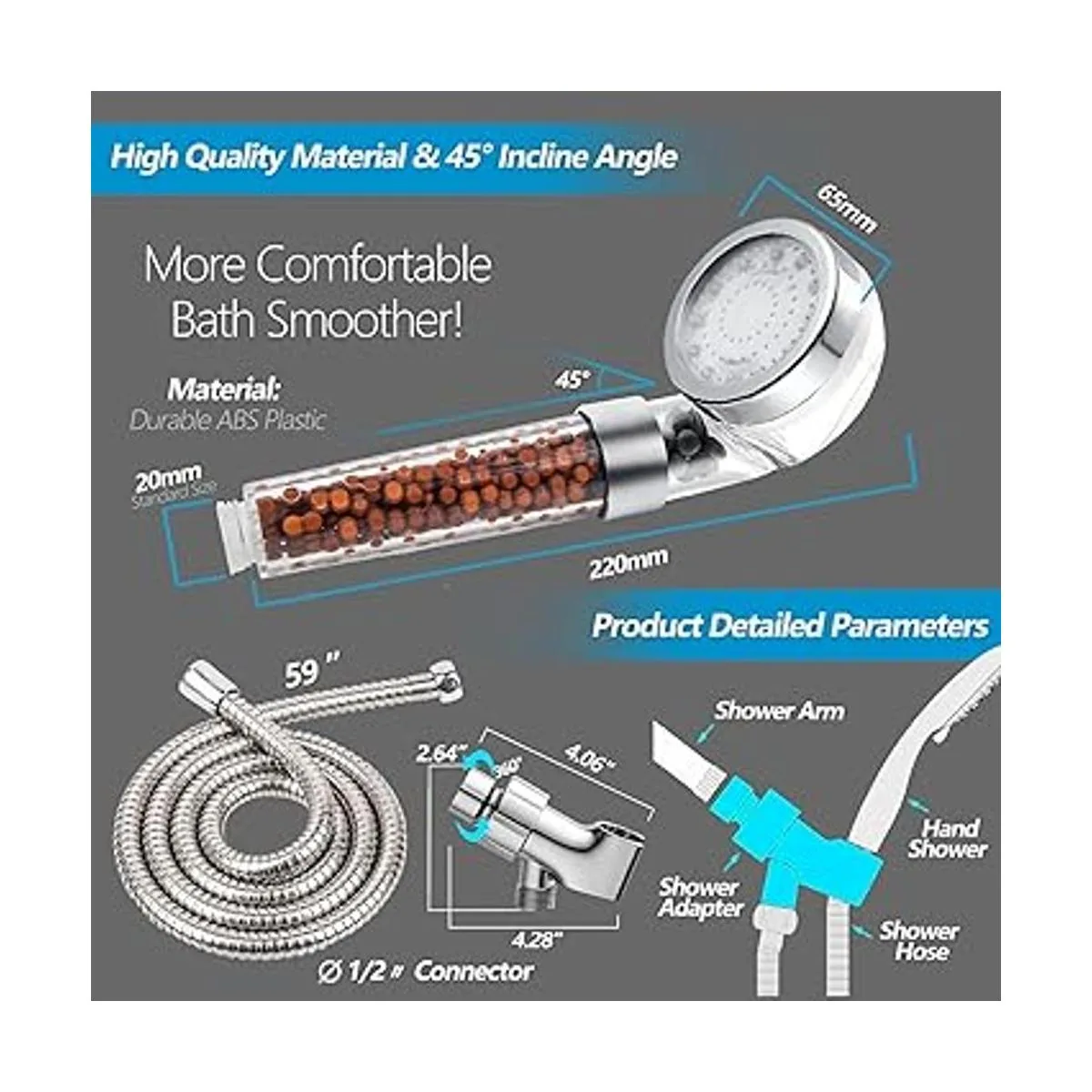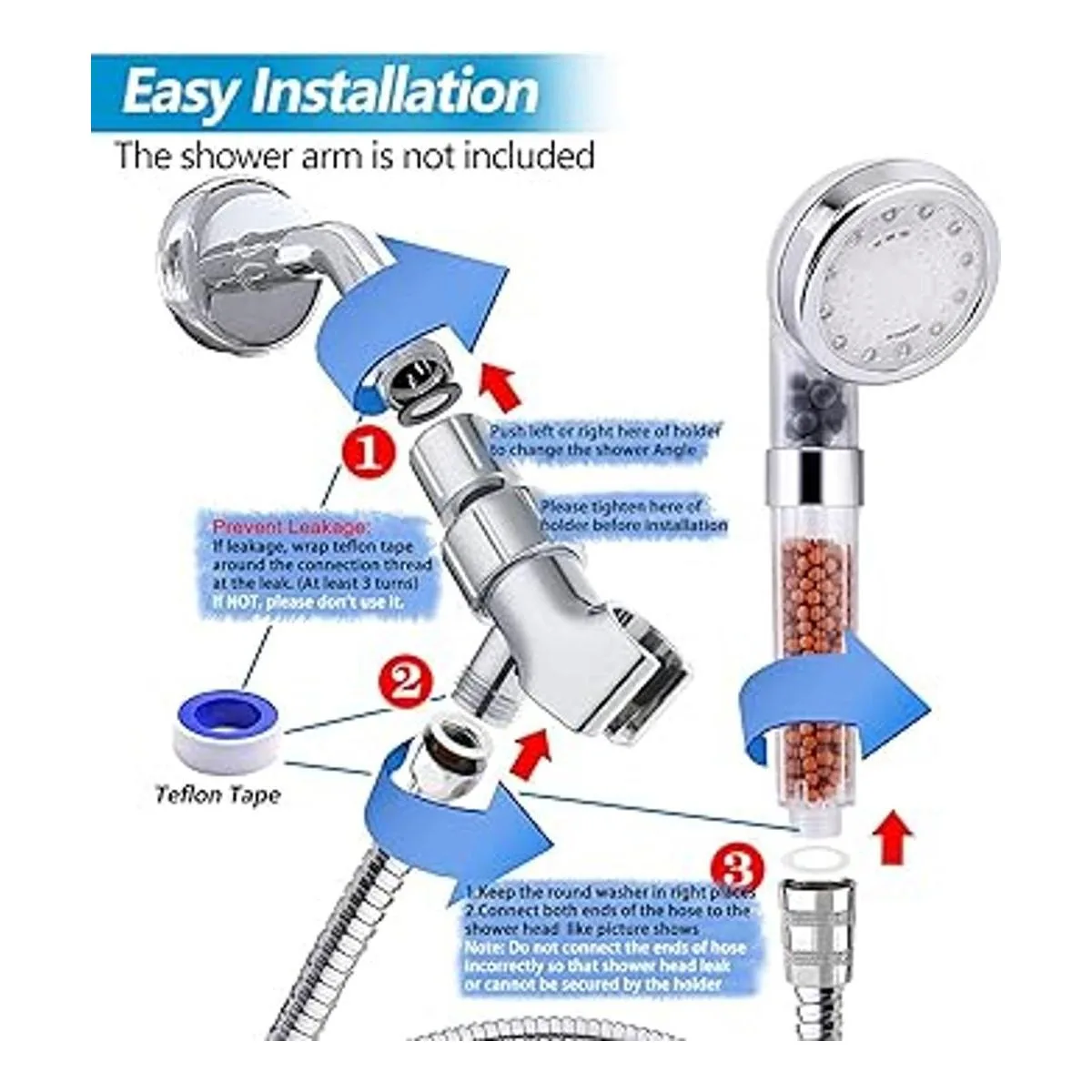 Fácil de instalar y desmontar: el paquete del cabezal de ducha filtrado con mano tiene una guía de instalación. No se requieren herramientas para la instalación y el desmontaje por ti mismo. Realmente conveniente para el uso diario y limpiar regularmente el cabezal de ducha LED.
