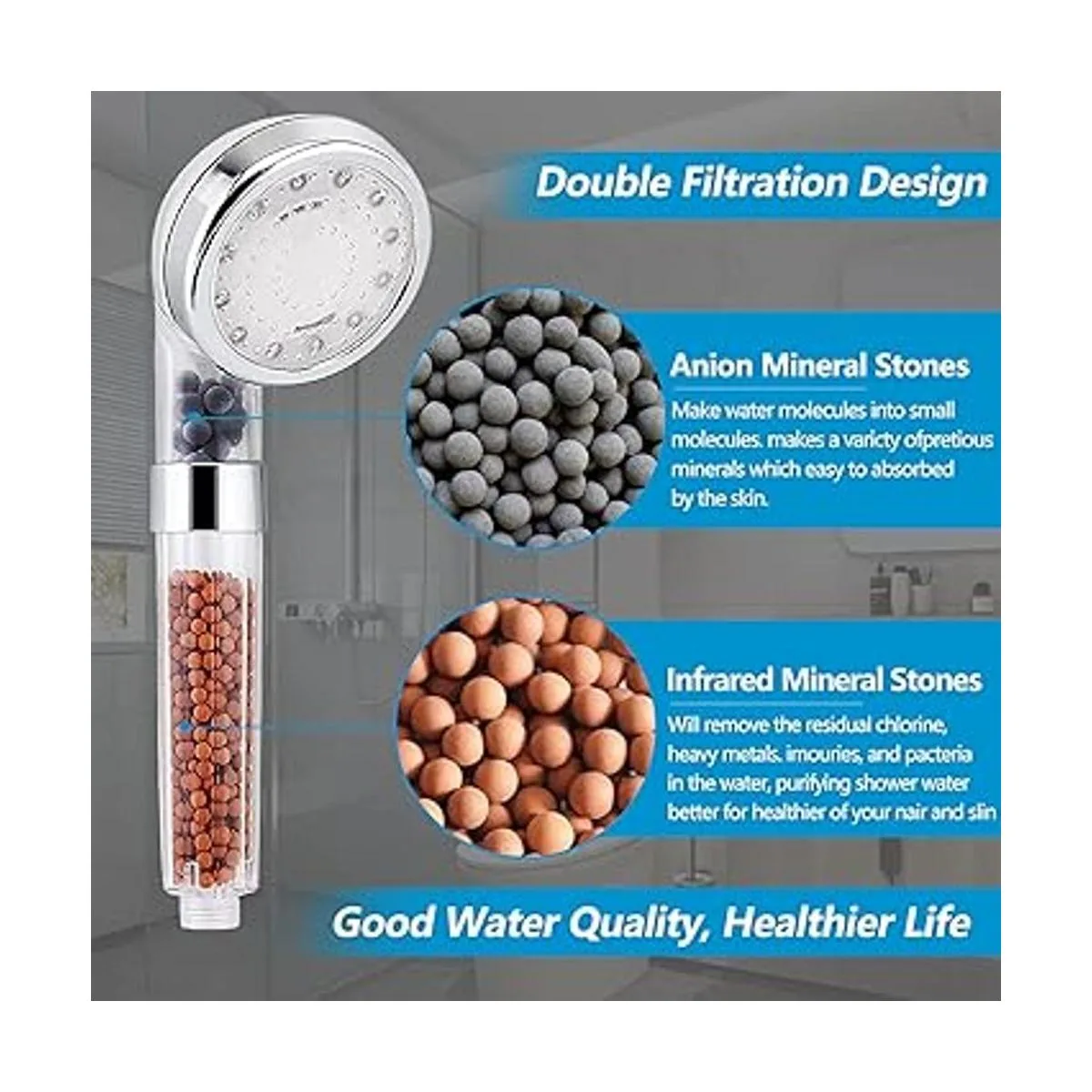 Sistema de filtración: cabezal de ducha filtrado LED FASTRAS con bolas de cuentas de piedra de filtración de color rojo y gris para purificar la calidad del agua y eliminar el cloro residual. También puede ajustar el valor de pH del agua y mantenerlo en un poco alcalino, lo que puede ayudar a restaurar la piel saludable y lisa, cabello suave y fuerte. Diseño transparente y filtración de alta densidad, más seguro en uso.