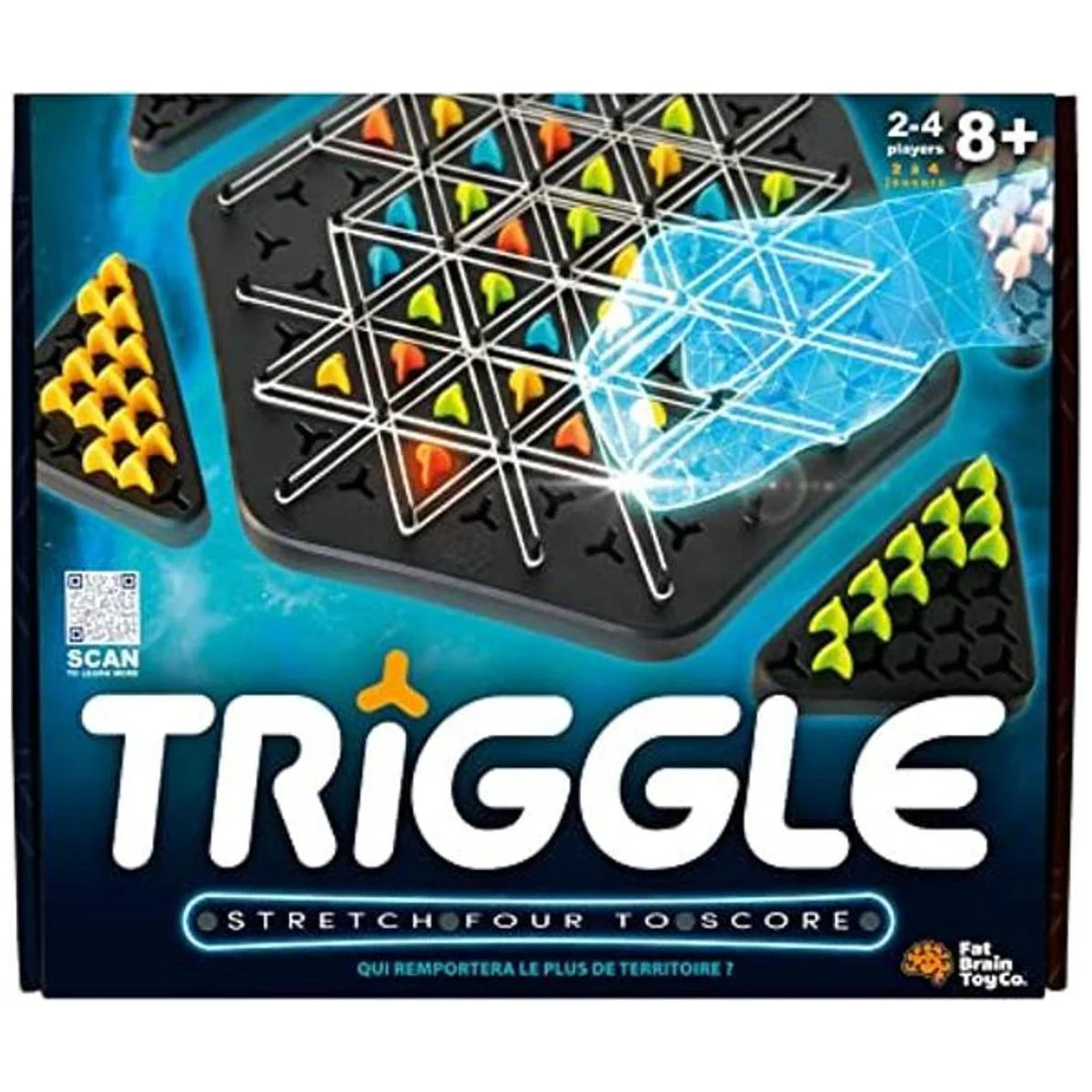 Fat Brain Toys Triggle Estira cuatro para anotar Divertido juego de estrategia familiar para niños, adolescentes y adultos Juego triangular de banda de goma
