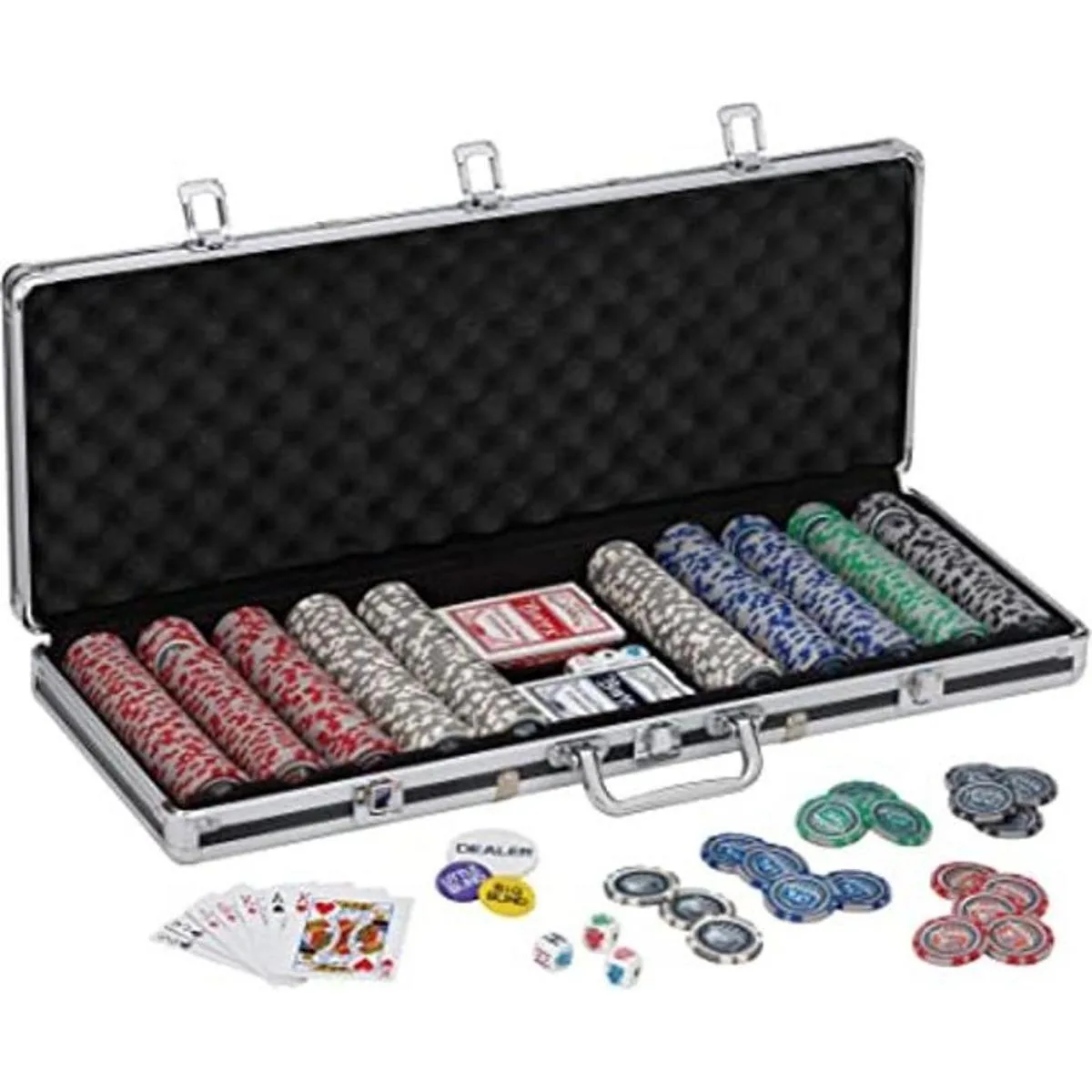 Incluye todos los accesorios para organizar un juego oficial: un juego completo de botones Big Blind, Little Blind, y Dealer