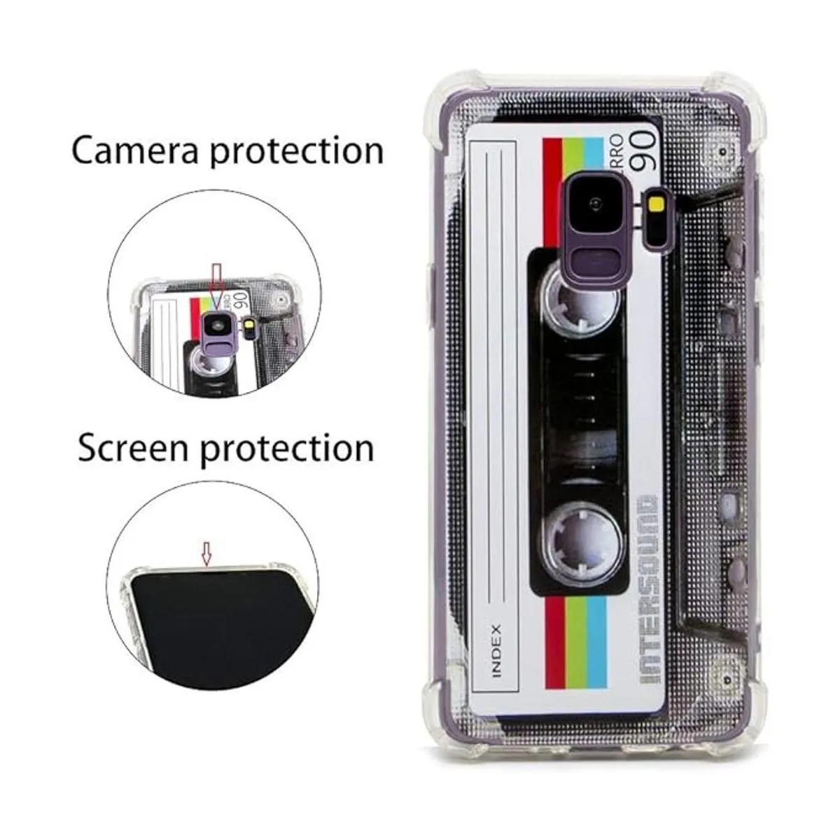 FAteamll Funda para Galaxy S9, con esquinas reforzadas, TPU suave, carcasa de cinta de casete retro compatible con Samsung Galaxy S9