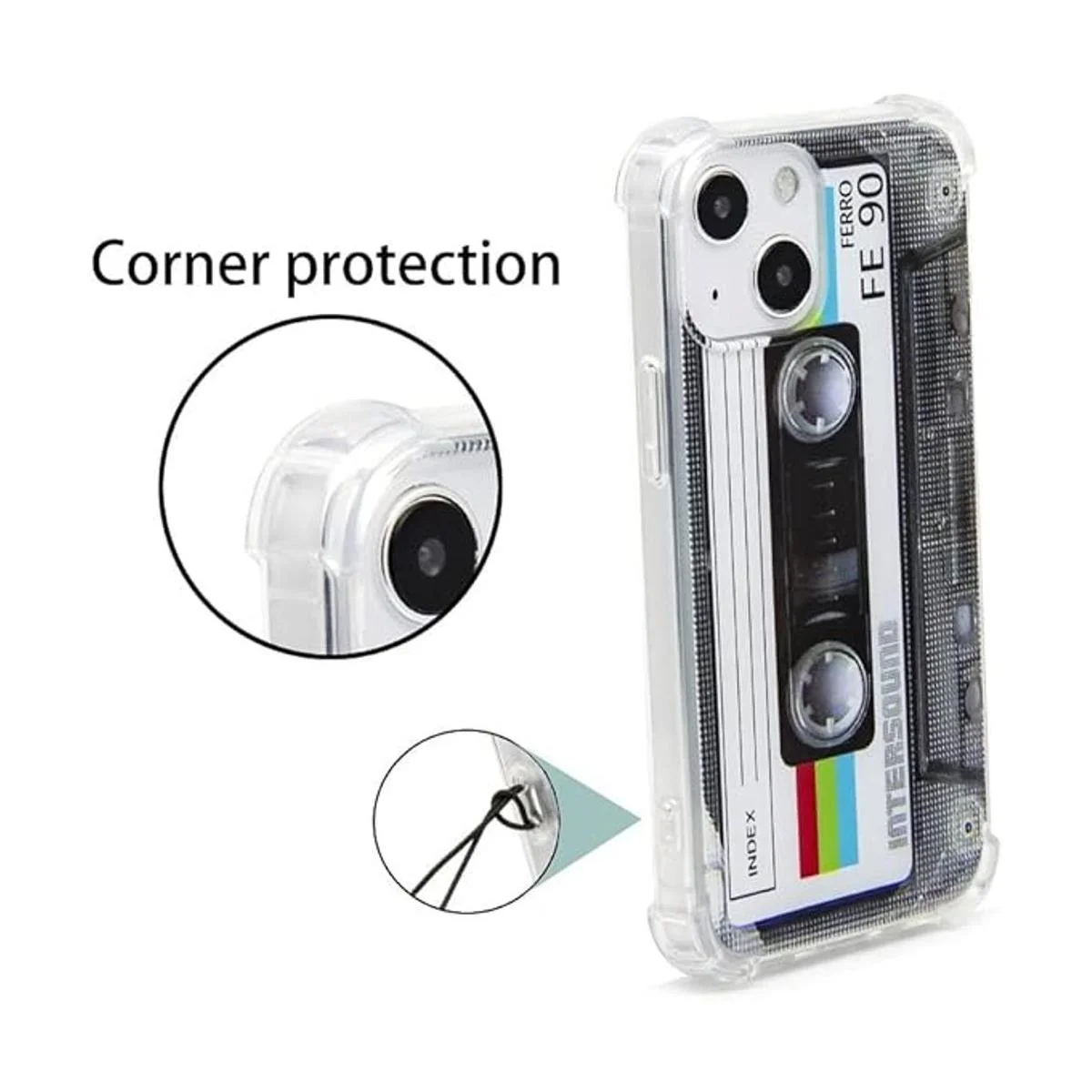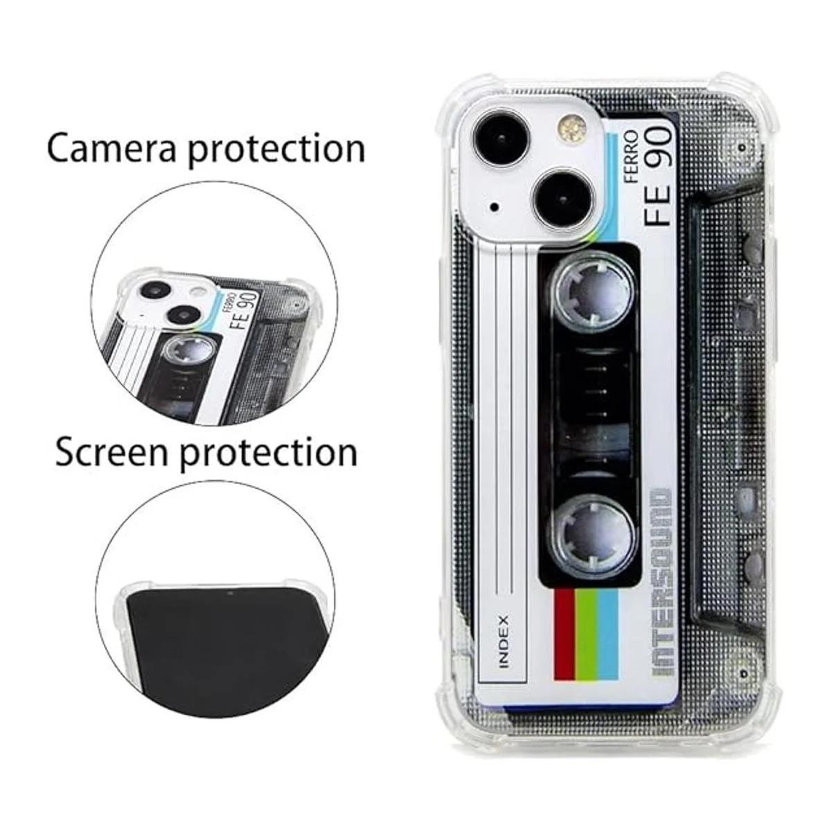 Especialmente diseñado para iPhone 13 Mini de 5.4 pulgadas, no apto para ningún otro dispositivo. El patrón especial de cinta de casete clásica en la funda hace que tu teléfono sea diferente y llamativo.