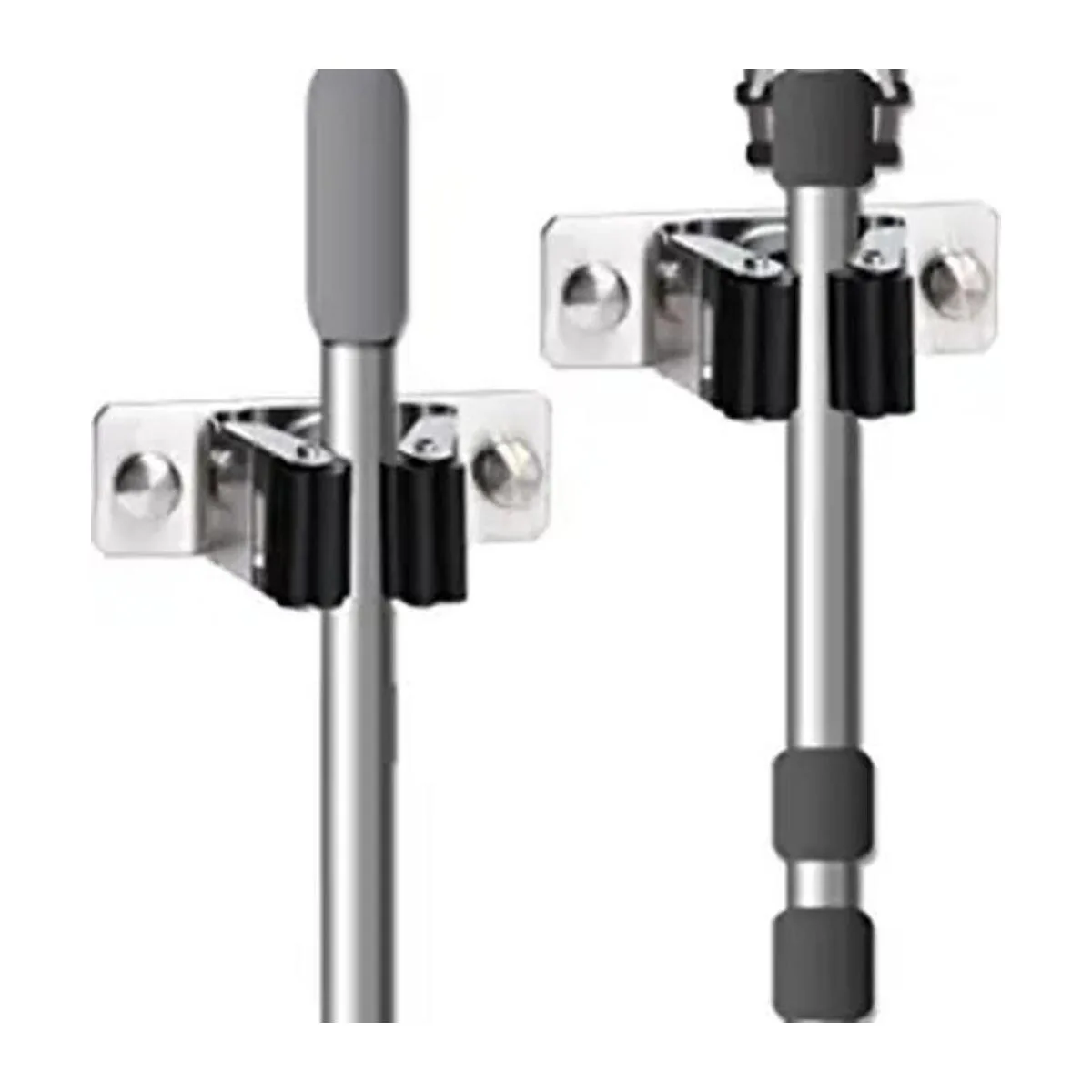 Favbal Soporte para escoba para trapeador, 2 piezas de acero inoxidable para montar en la pared, tornillos antideslizantes o ganchos autoadhesivos para almacenamiento