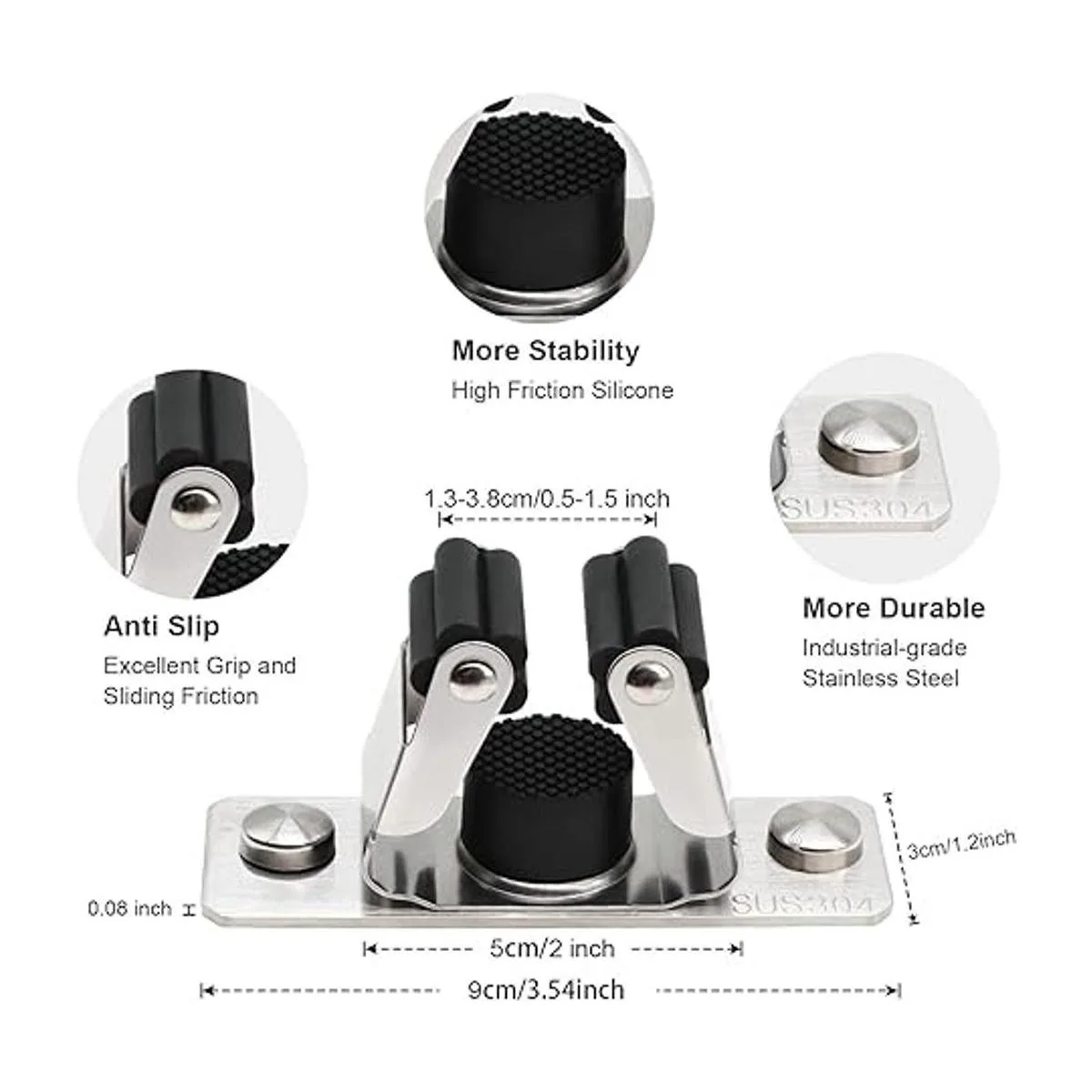 Fuerte y resistente: el colgador de almacenamiento está hecho de acero inoxidable SUS 304 y hebilla de triángulo y engranaje en forma de pétalo ajusta el tamaño automáticamente en función de diferentes grosores de las asas para evitar que el objeto se deslice, puede soportar hasta 30 libras en total, más fuerte y resistente que el soporte de plástico.