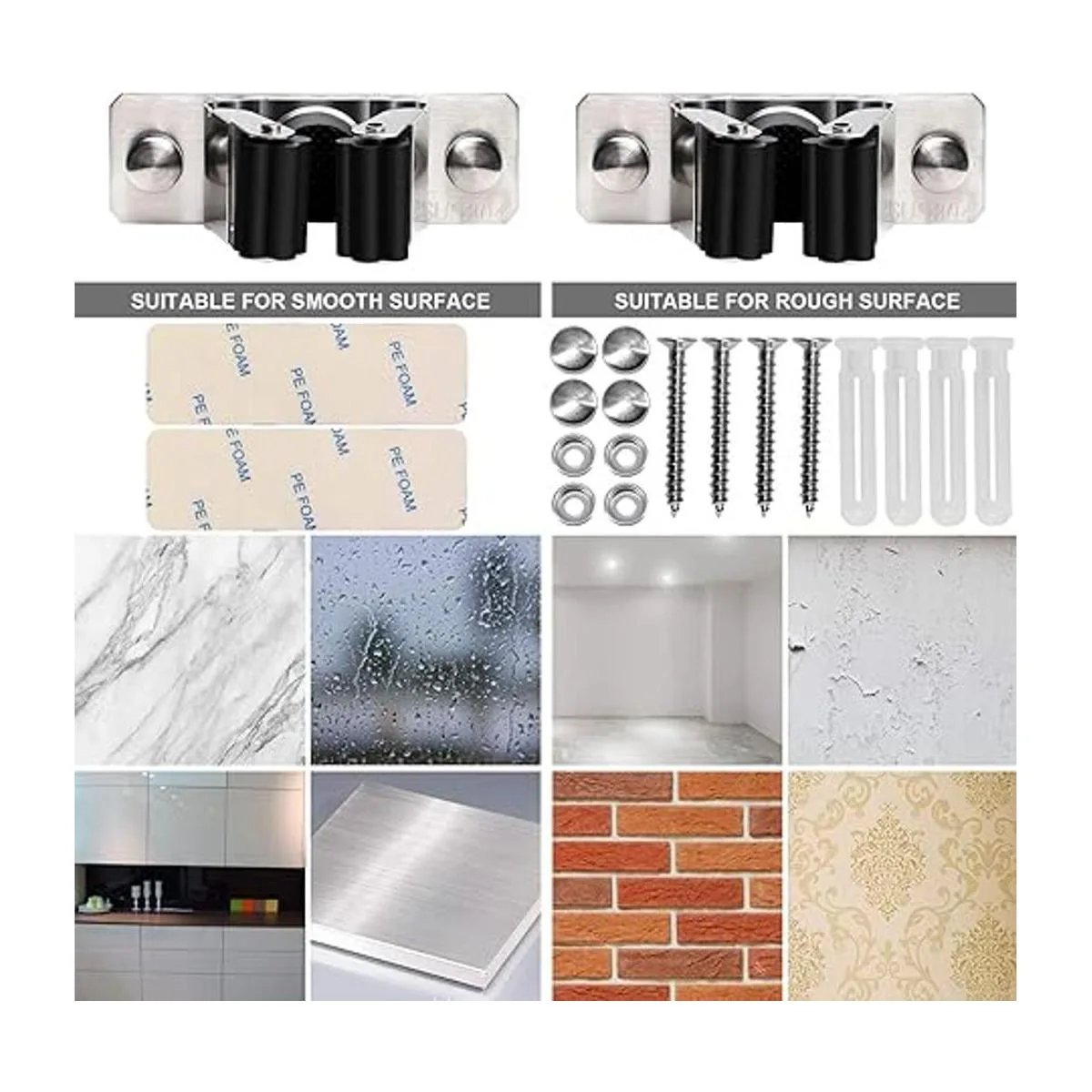 2 maneras de instalar: ofrecemos dos formas de instalar: tornillos perforados y autoadhesivos. Puedes elegir la solución de instalación adecuada de acuerdo con la superficie de instalación: autoadhesivo para superficie lisa, tornillos perforados para superficies rugosas. También se puede desmontar y reutilizar.