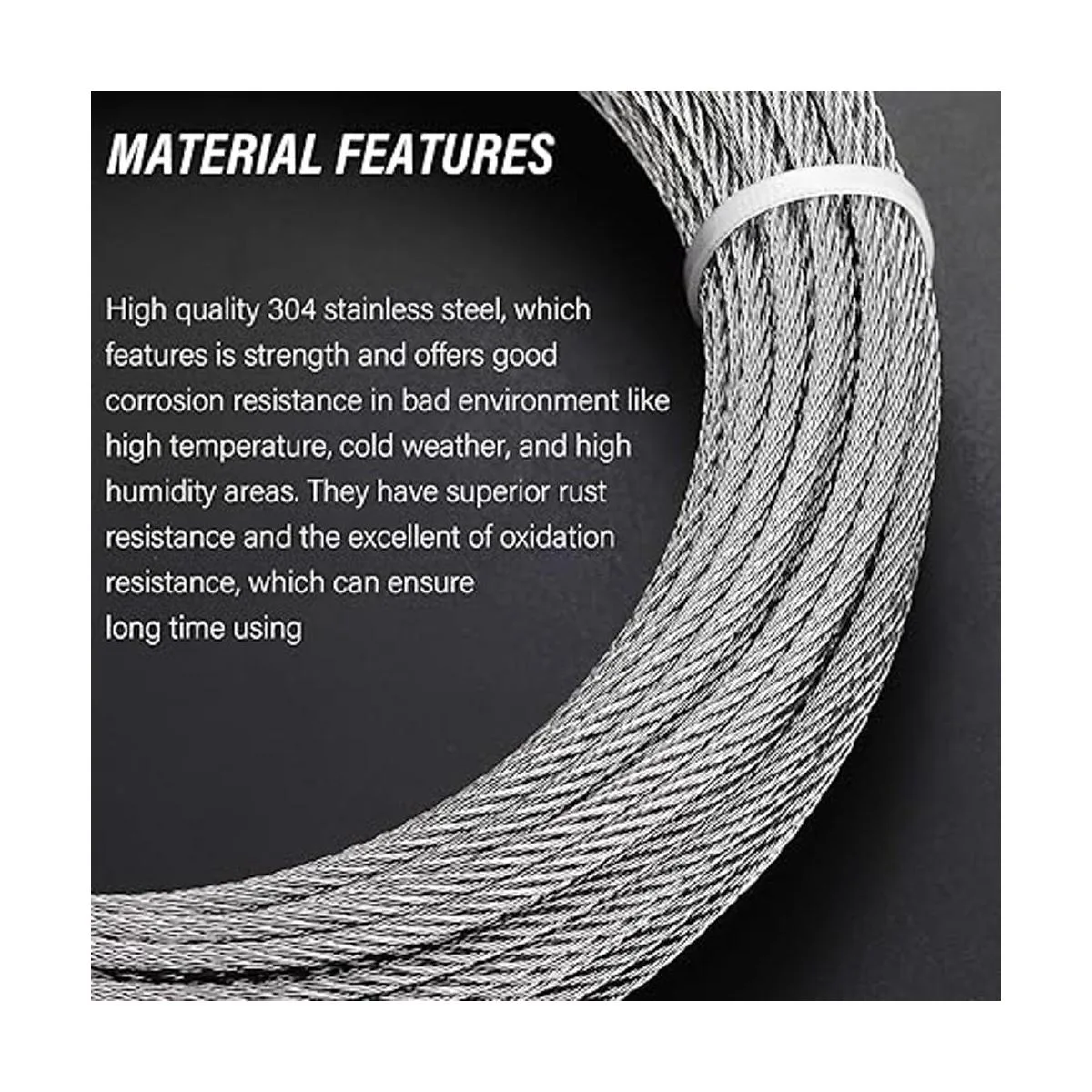 El paquete incluye: cable de alambre de acero inoxidable de 0.1 in x 32.8 ft, 50 mangas de crimpado de aluminio y 12 dedales de acero inoxidable. Ideal para sistema de barandilla de cable de cubierta, balaustrada, persianas al aire libre, luces de cadena colgantes en el jardín, flotadores de construcción para jardinería de ostras, tendederos o incluso un sistema de correr para perros en el patio.