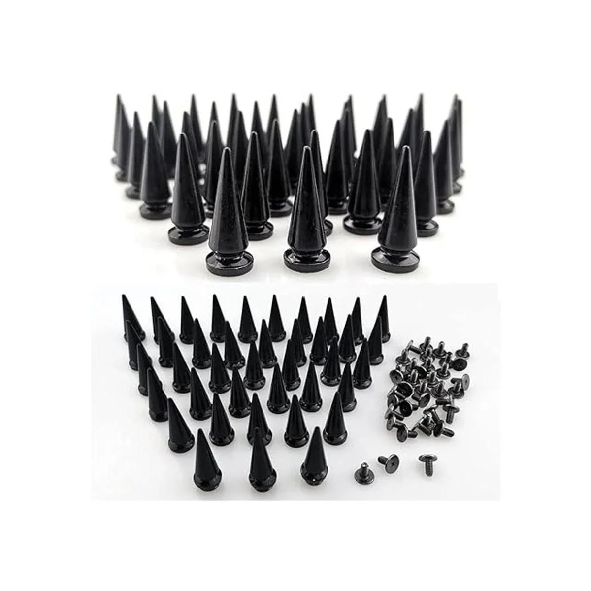 El paquete incluye: 40 pares de remaches punk negros, viene con tornillos para su aplicación.