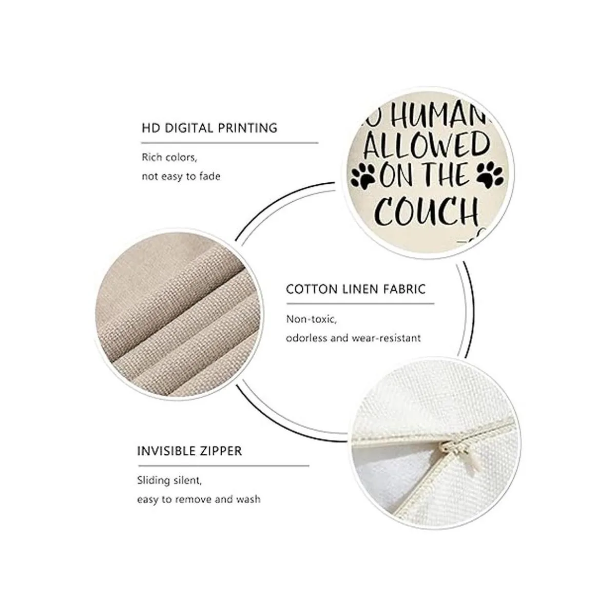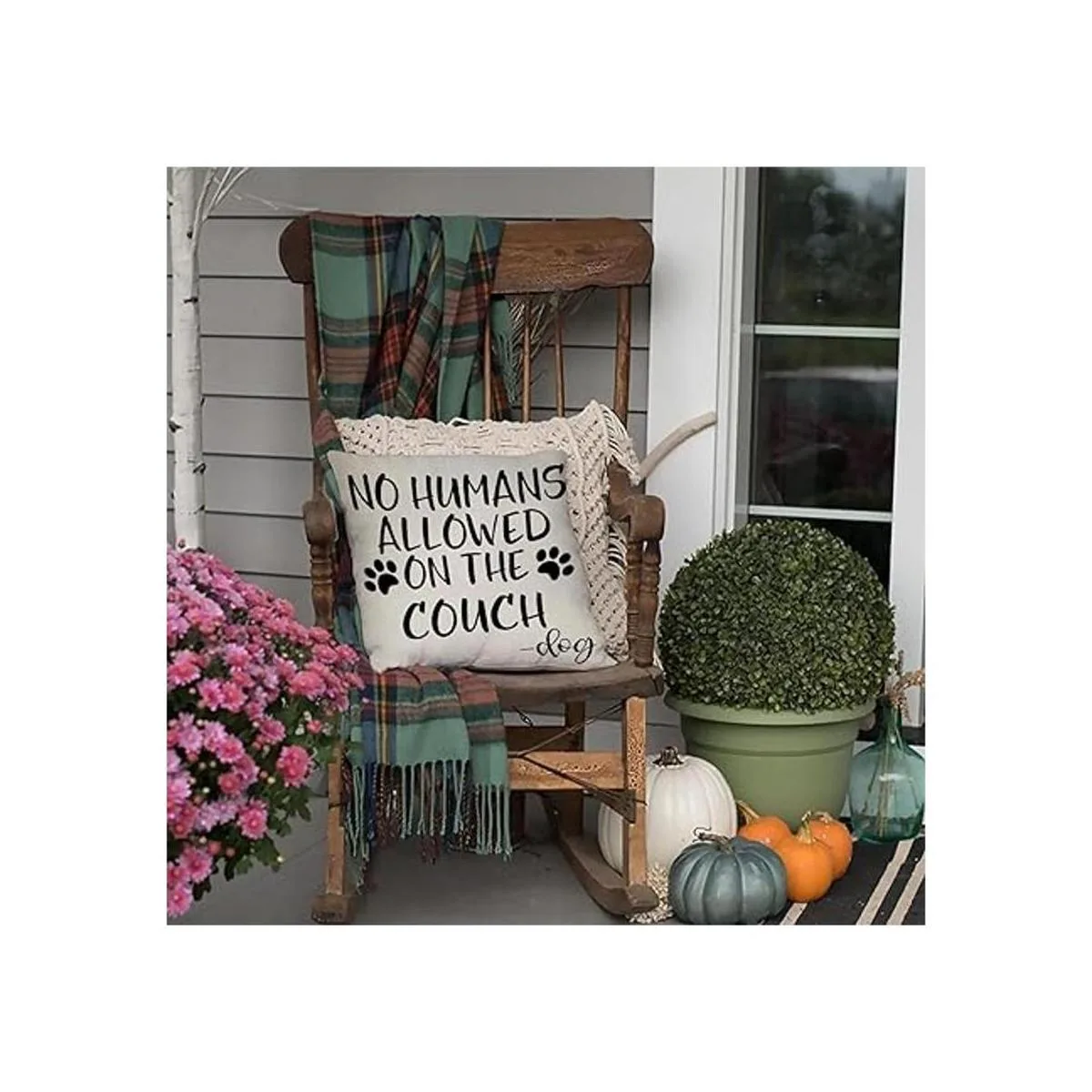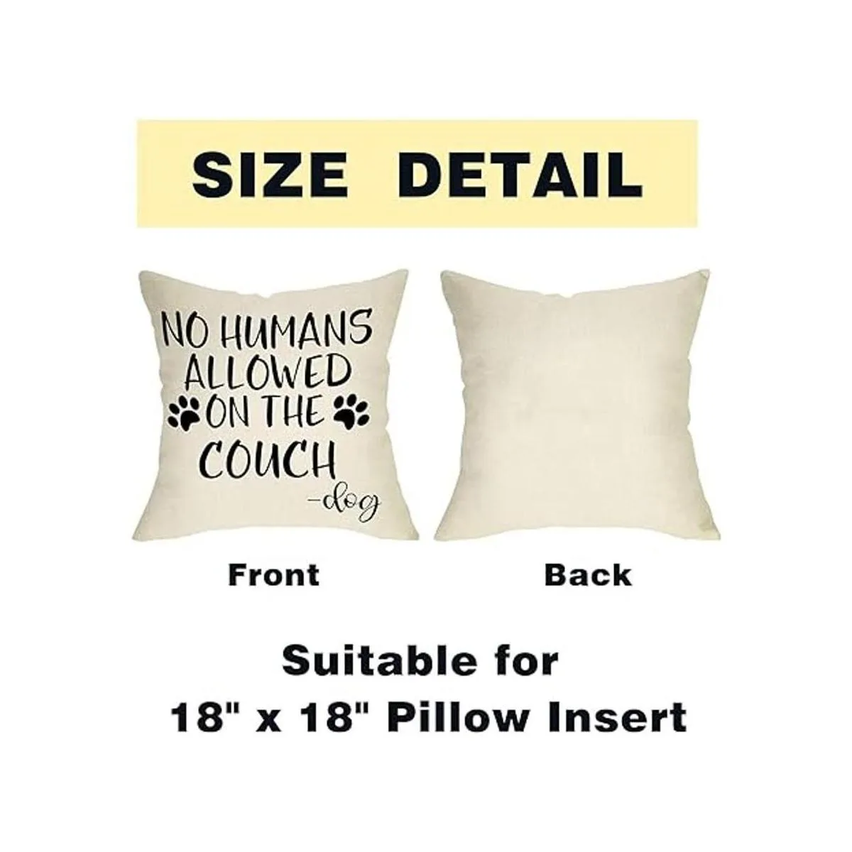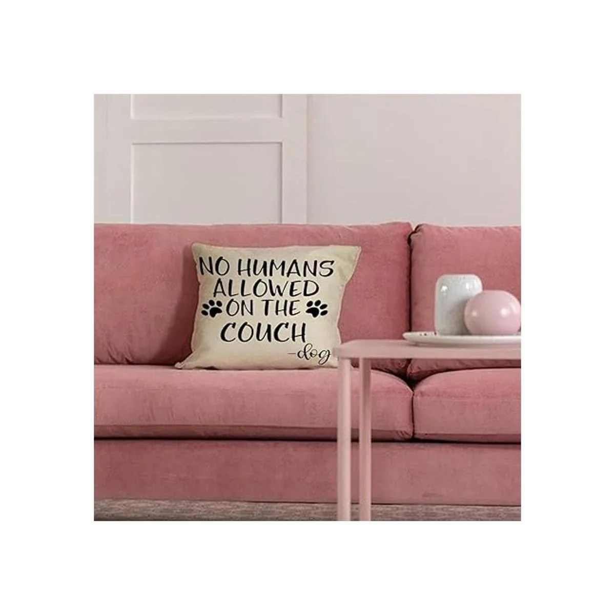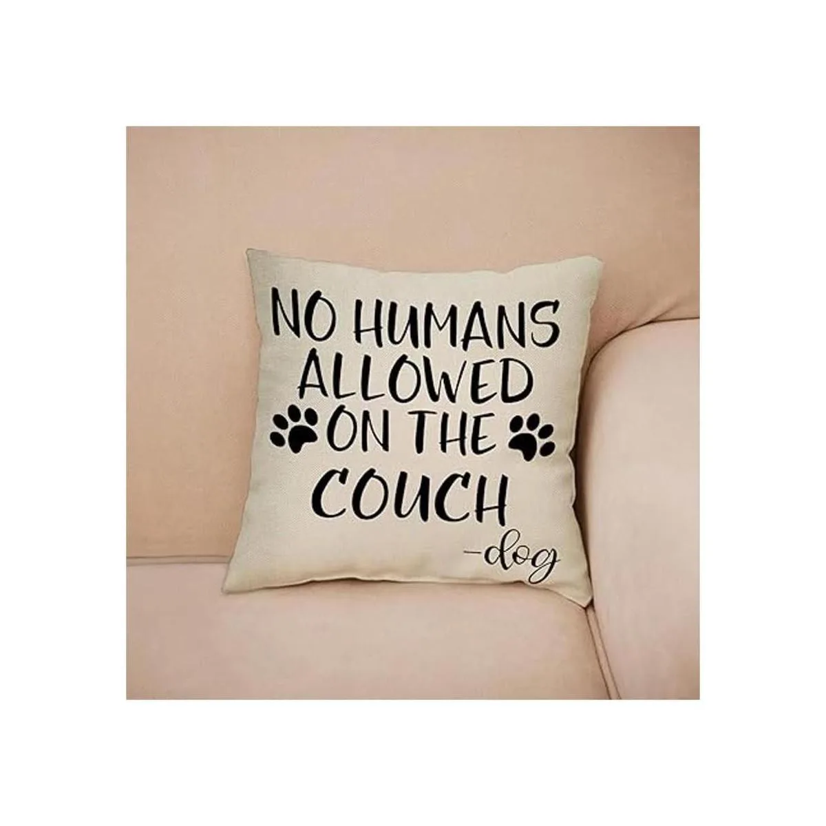 FBCOO No Humans Allowed on The Sofa Funda de almohada decorativa con patrón de pata de perro, regalos divertidos para amantes de los perros, letrero de decoración de funda de cojín para decoración de casa de campo de temporada para sofá, 18 x 18 pulgadas