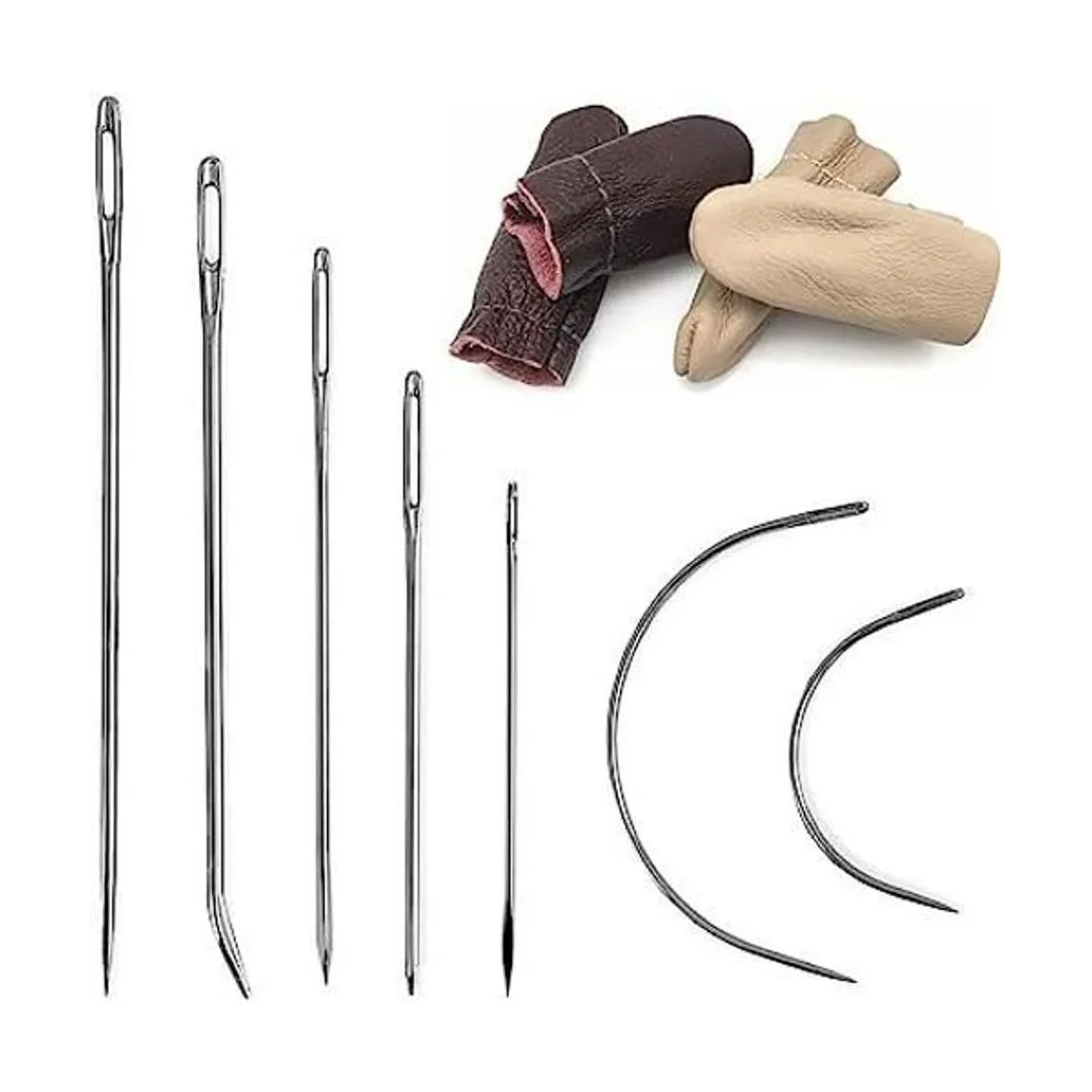 Contenido del paquete: 7 agujas de coser de cuero. 2 pares de protectores de dedos de piel para fieltro.