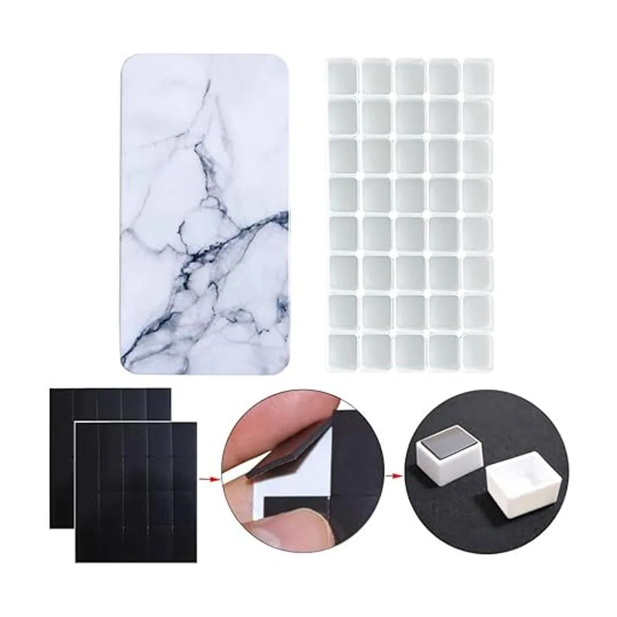 FCLUB Paleta de acuarela con 40 piezas de media bandeja de acuarela vacía que lleva cuadrados magnéticos, paleta de pintura de artistas para pintura de acuarela DIY