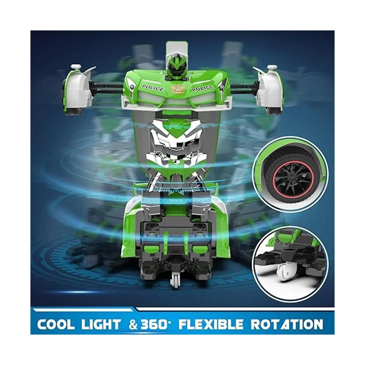 FDJ Automóvil de control remoto Transforma coches RC a escala 118 de 2.4 GHz, coche de deriva RC con luces intermitentes, deformación de una tecla giratoria de 360 grados para niños de 4 a 7 años, 8 a 12 años