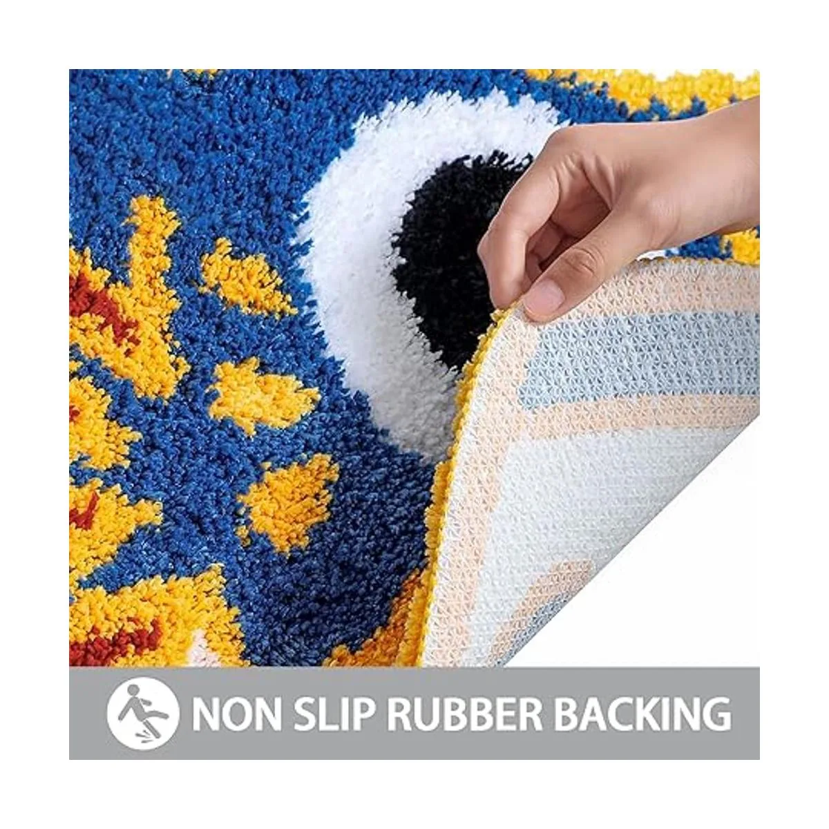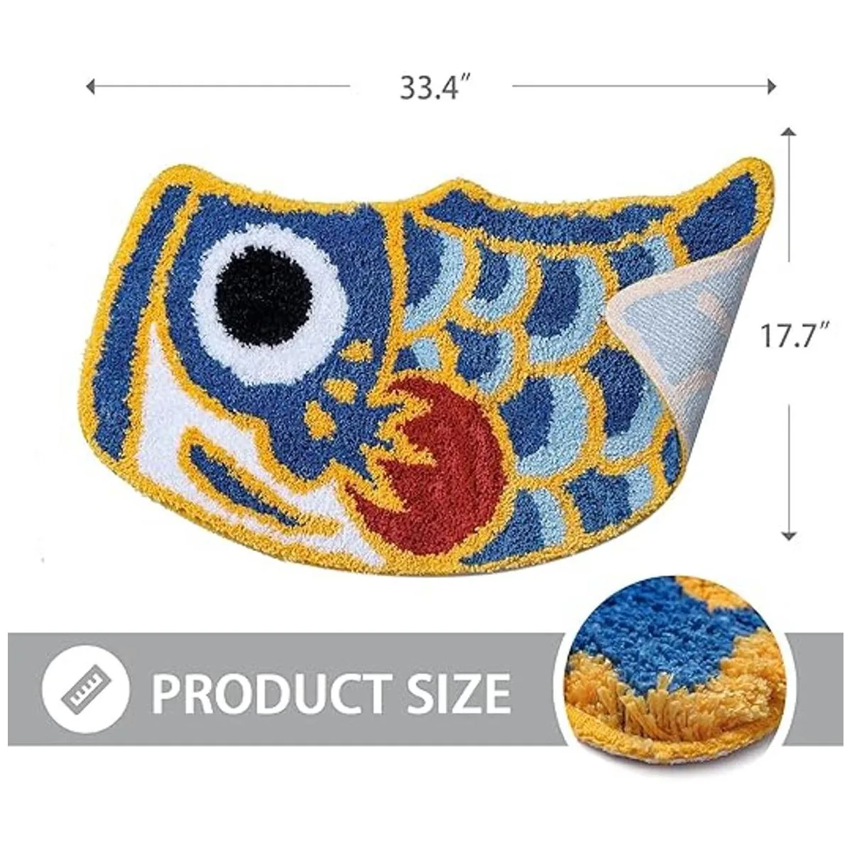 Feblilac Lindo tapete de baño de pez, tapete de baño suave con bandera japonesa, absorbente de agua, antideslizante, lavable a máquina azul
