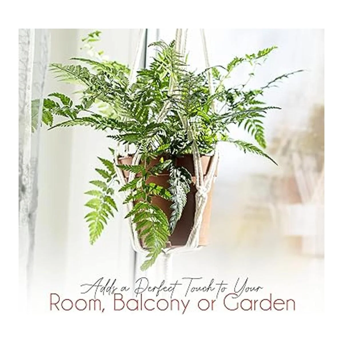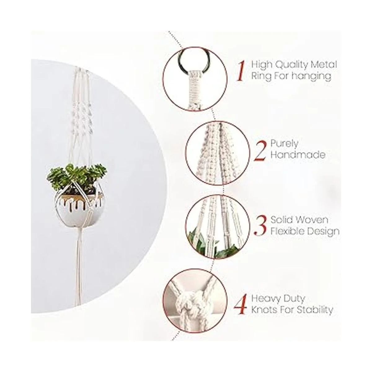 Calidad excepcional: los colgadores grandes de macramé ofrecen cuerdas de calidad superior. Los ganchos para plantas de techo están hechos a mano con cuerdas de algodón de alta calidad, robustas, suaves y duraderas. El soporte para plantas de macramé ofrece estabilidad a tus macetas