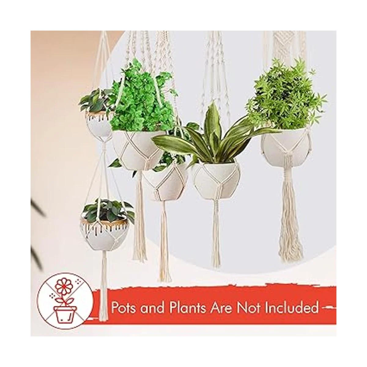 Feedee Colgadores de plantas de macramé para interiores y plantas de interior, paquete de 6 soportes colgantes para plantas para colgar en interiores, ganchos hechos a mano para plantas de interior, decoración bohemia y del hogar