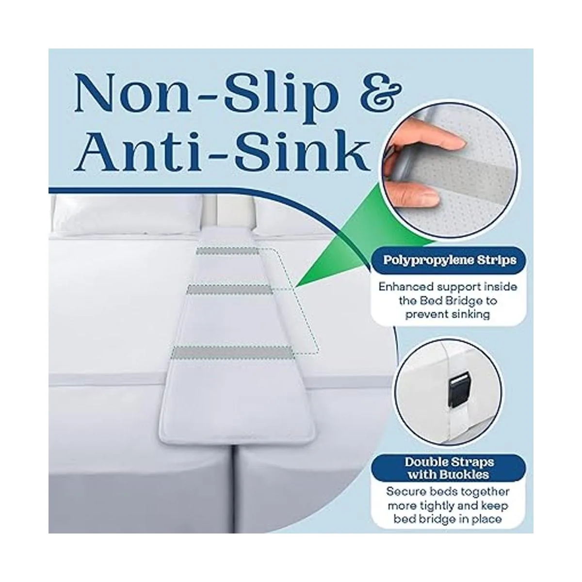 FeelAtHome Puente de cama prémium de 12 pulgadas Kit convertidor de cama individual XL a King Antifregadero y antideslizante Conector de colchón ajustable extra ancho con 2 correas para invitados