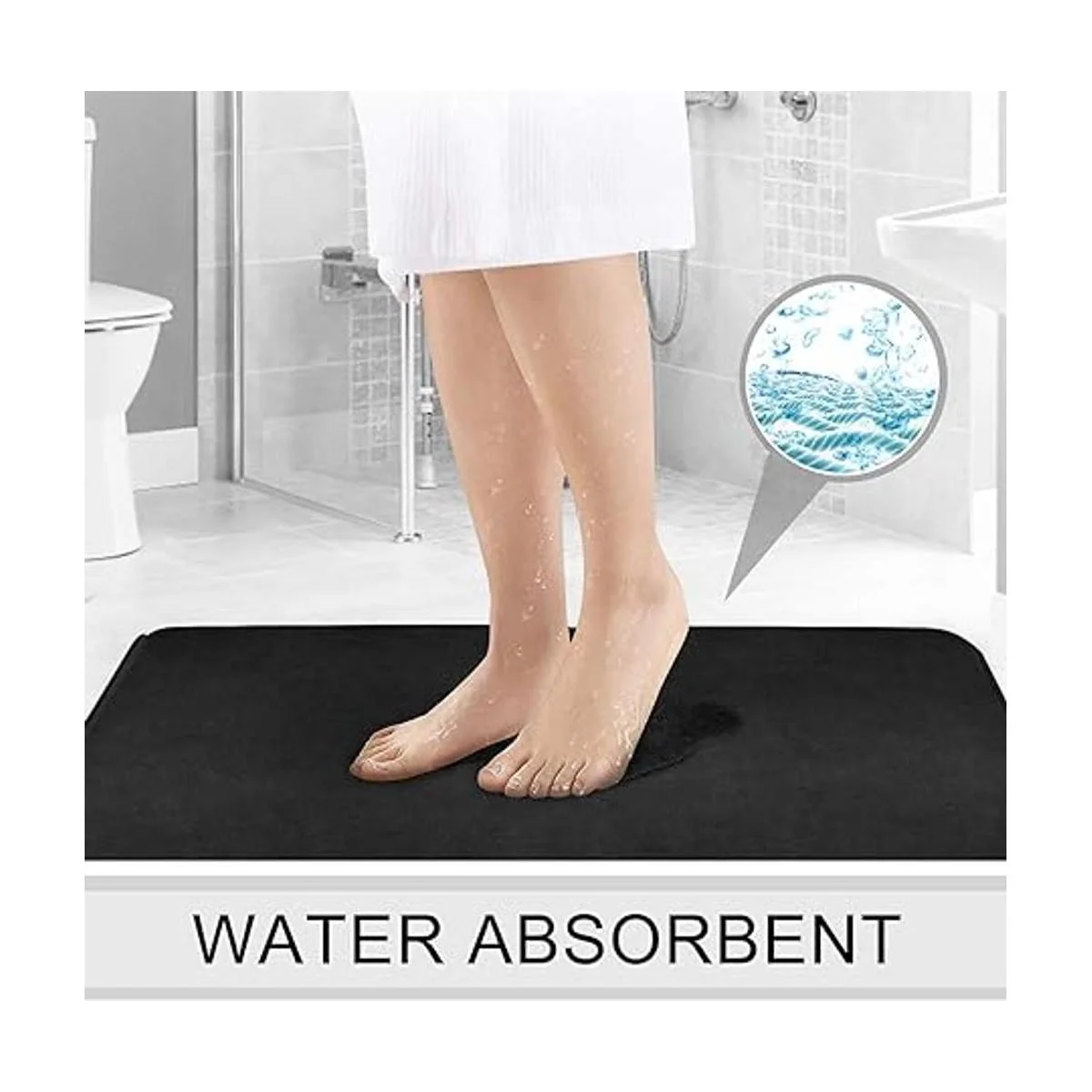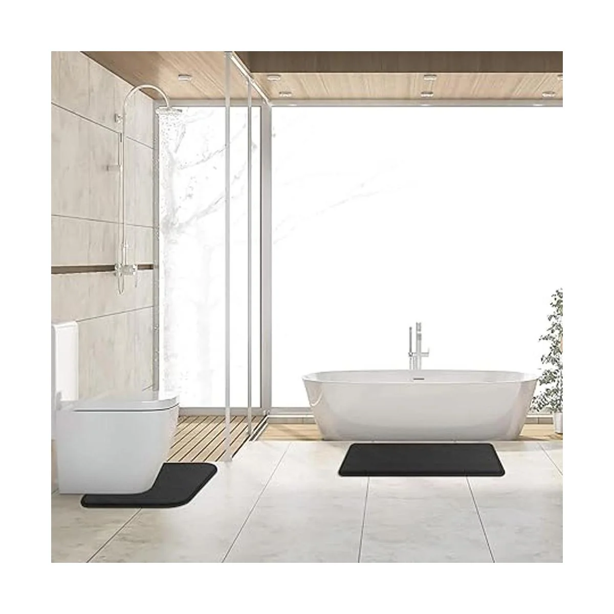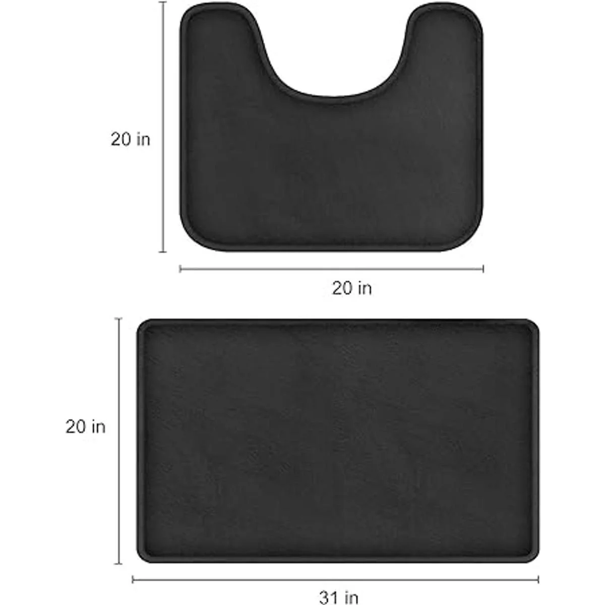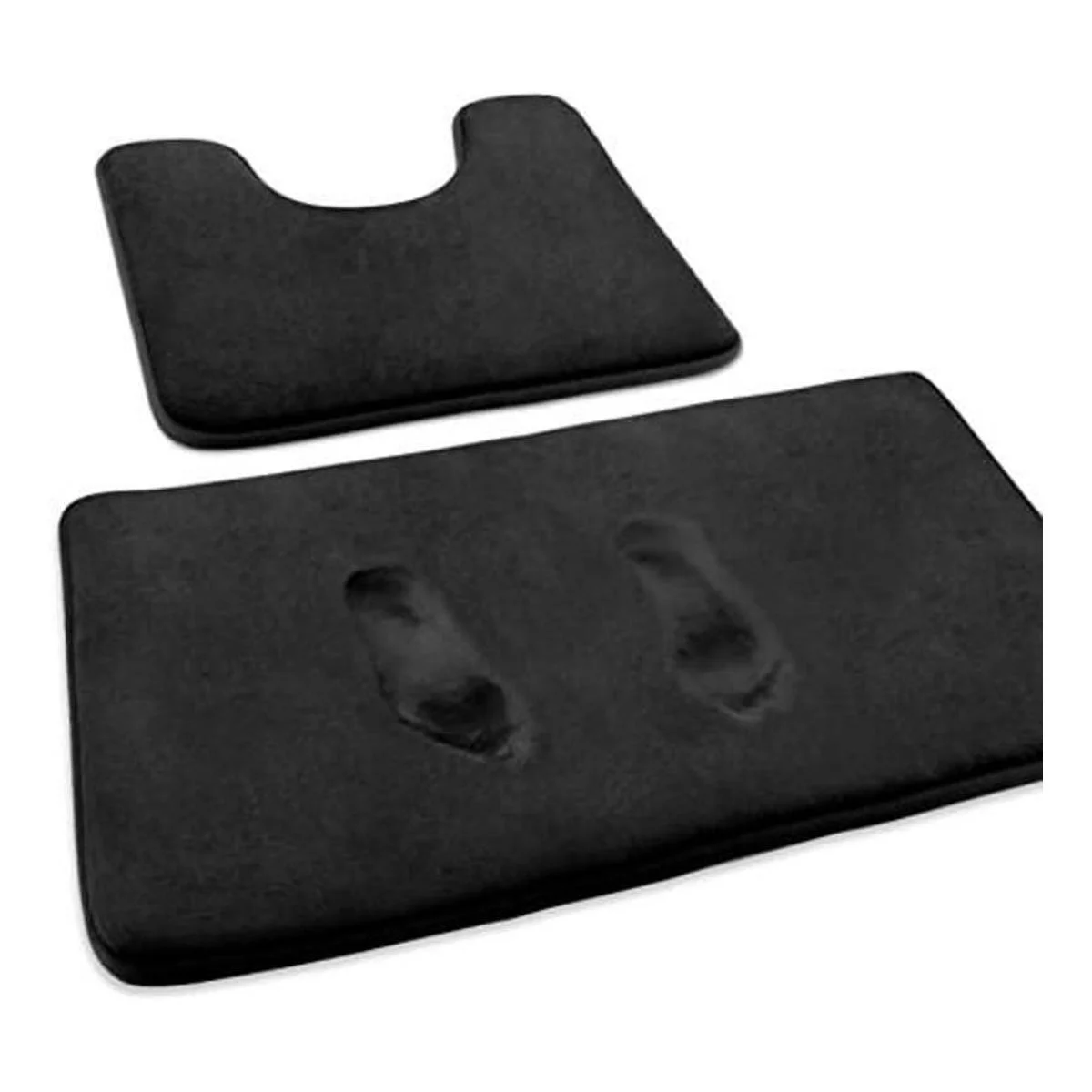 FEELSO Juego de alfombras de baño de espuma viscoelástica, extra suaves, 2 piezas, antideslizantes, absorbentes, 20 x 31 pulgadas, alfombra de contorno en forma de U de 20 x 20 pulgadas, para bañera, ducha y baño, color negro