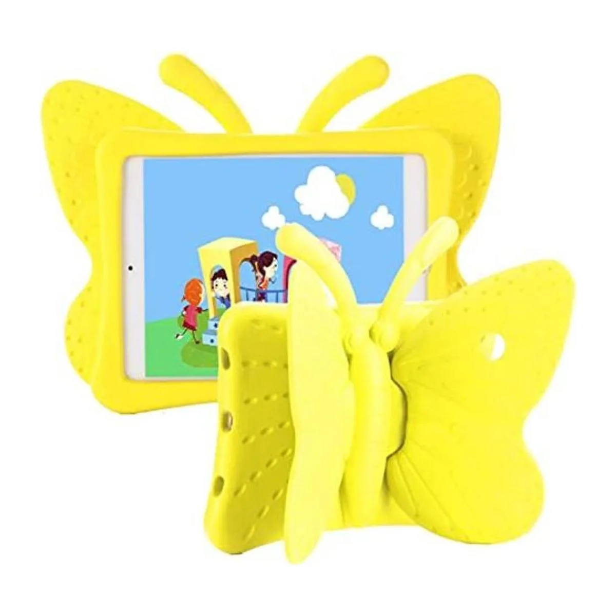 Feitenn Funda para iPad para niños, diseño de mariposa de dibujos animados 3D, no tóxica, EVA, ligera, a prueba de golpes, con soporte para iPad 5, iPad 6, iPad Pro 9.7, funda para iPad 2017 amarillo