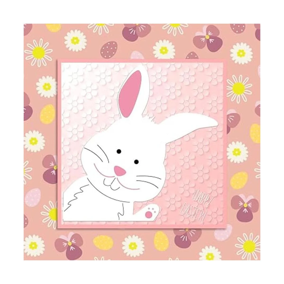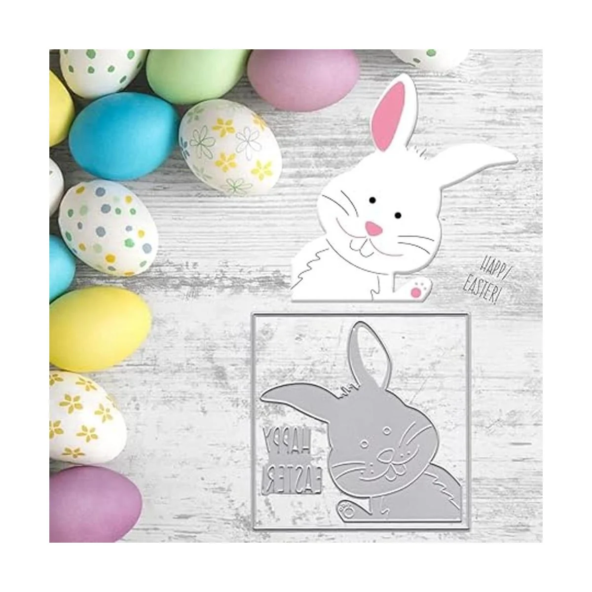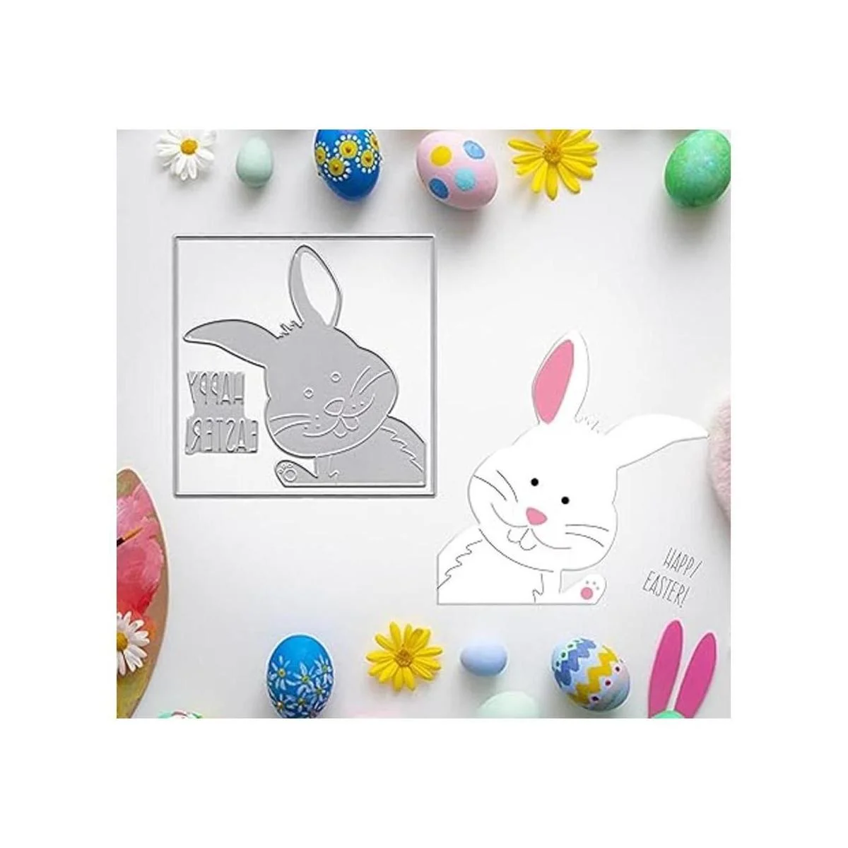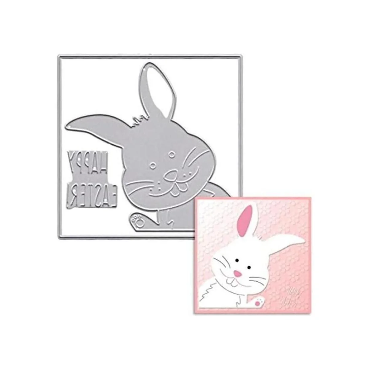 Diseño: Feliz Pascua conejo cuadrado marco metal troquelado, conejo de Pascua troquelado para hacer tarjetas.