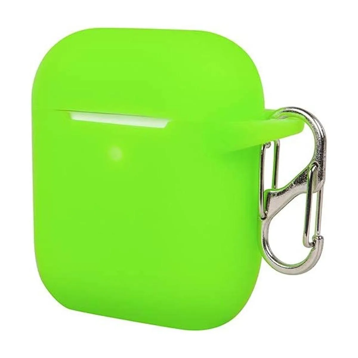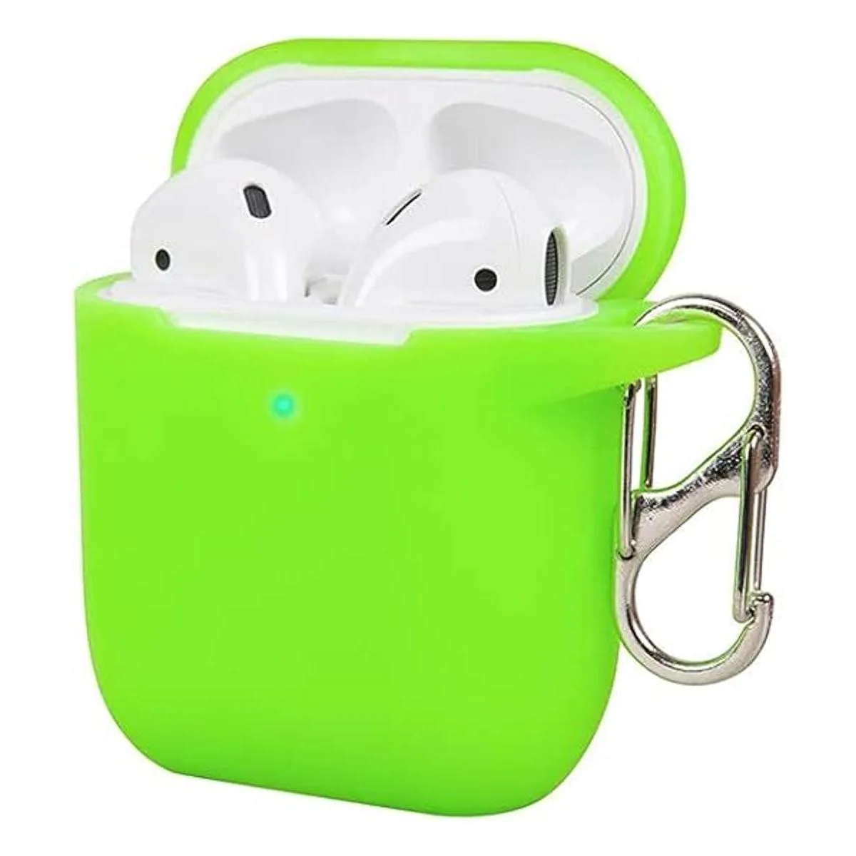 Felony Case Funda de silicona suave para AirPods 2 y 1 Verde neón A prueba de golpes, 360 protectora Apple Airpods funda con llavero Carga inalámbrica compatible con LED frontal visible