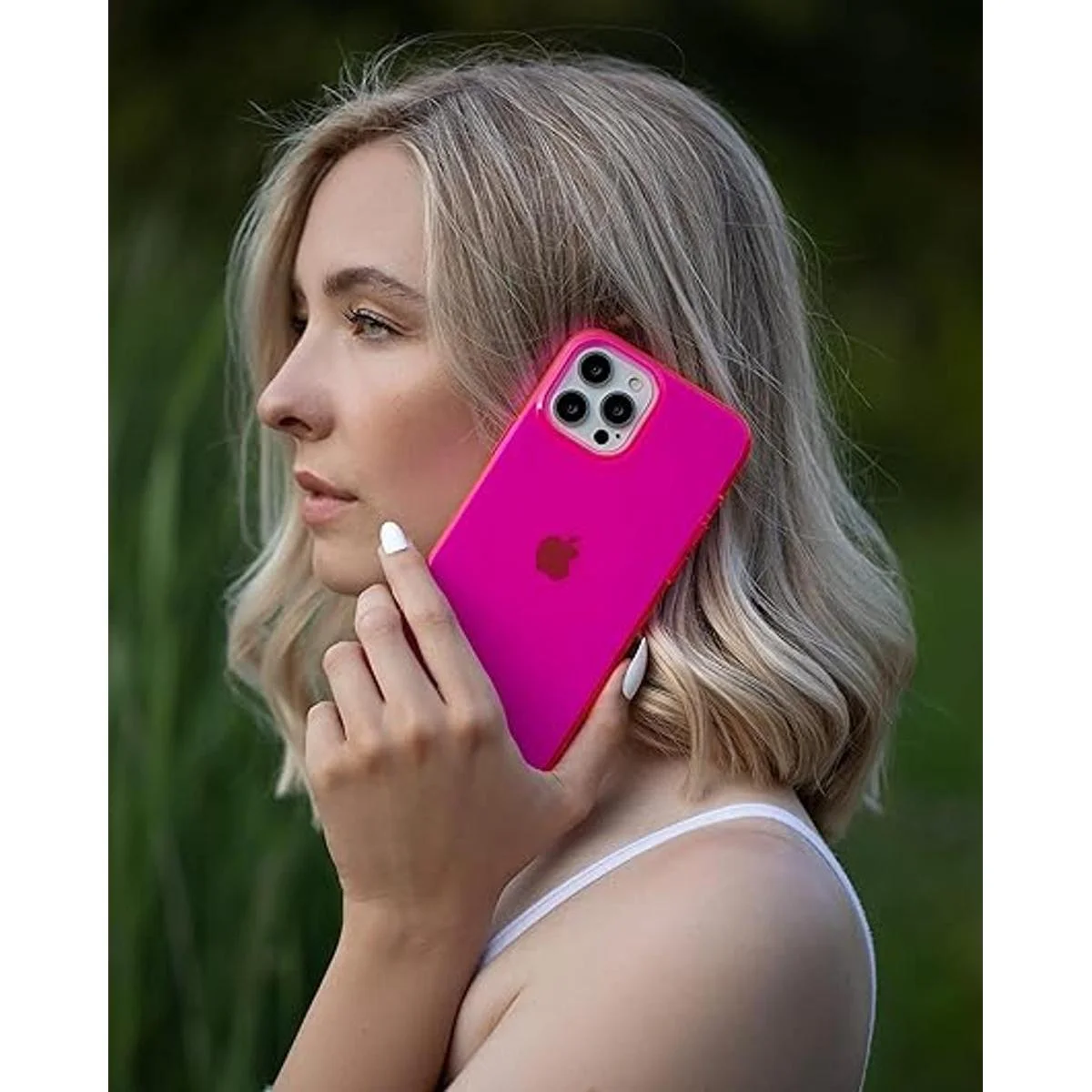 Protección de 360: funda ligera, elegante y absorbente de golpes que protege contra caídas, abolladuras y arañazos con lados flexibles de TPU y un respaldo de policarbonato duro. Esta funda transparente de neón también cuenta con bordes biselados elevados que protegen la pantalla de tu iPhone y la lente de la cámara.
