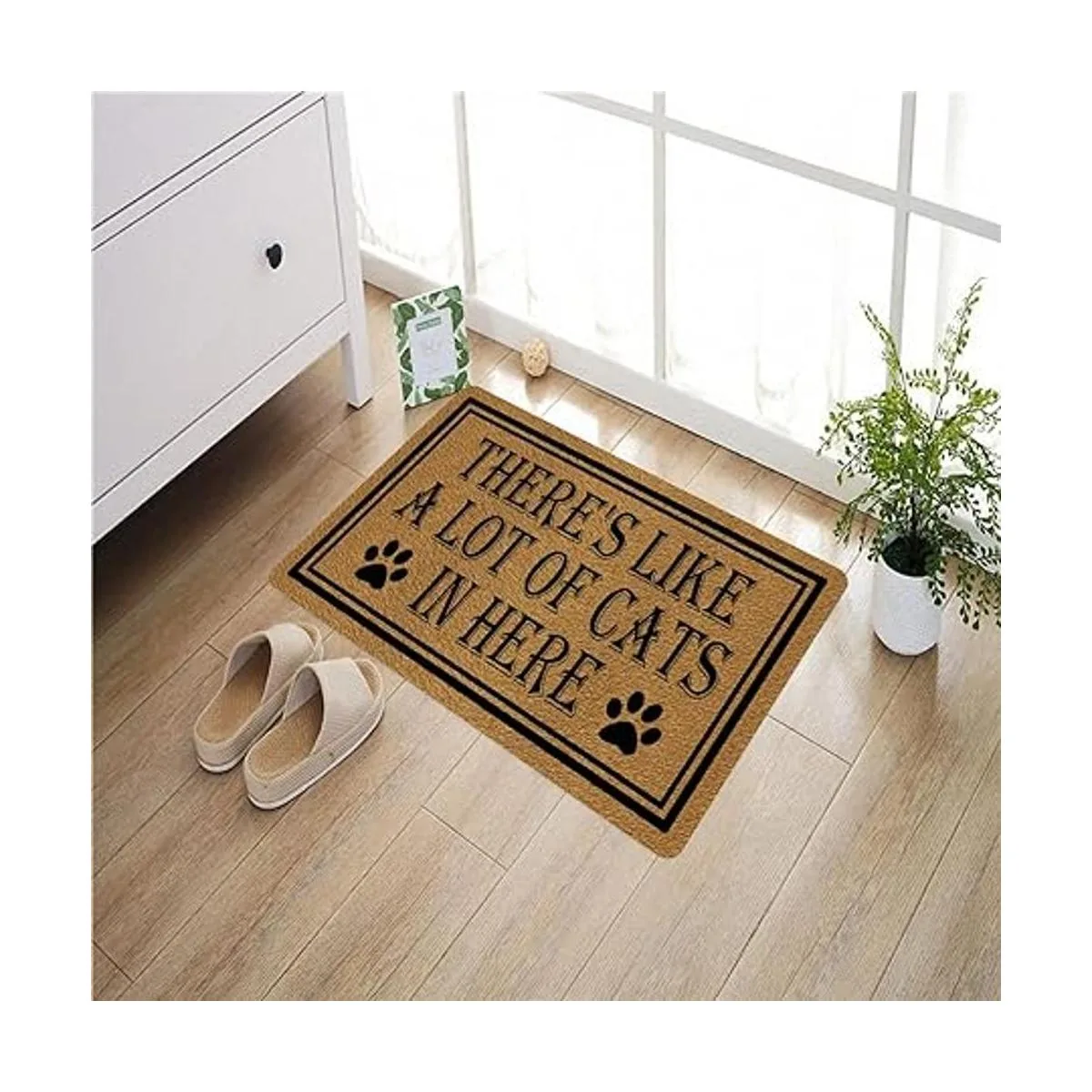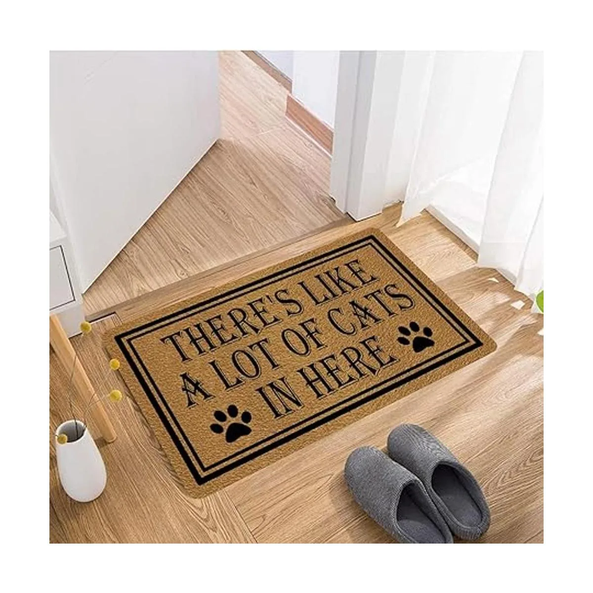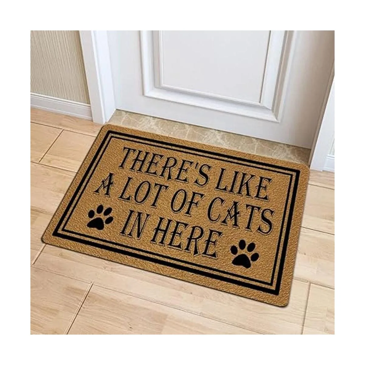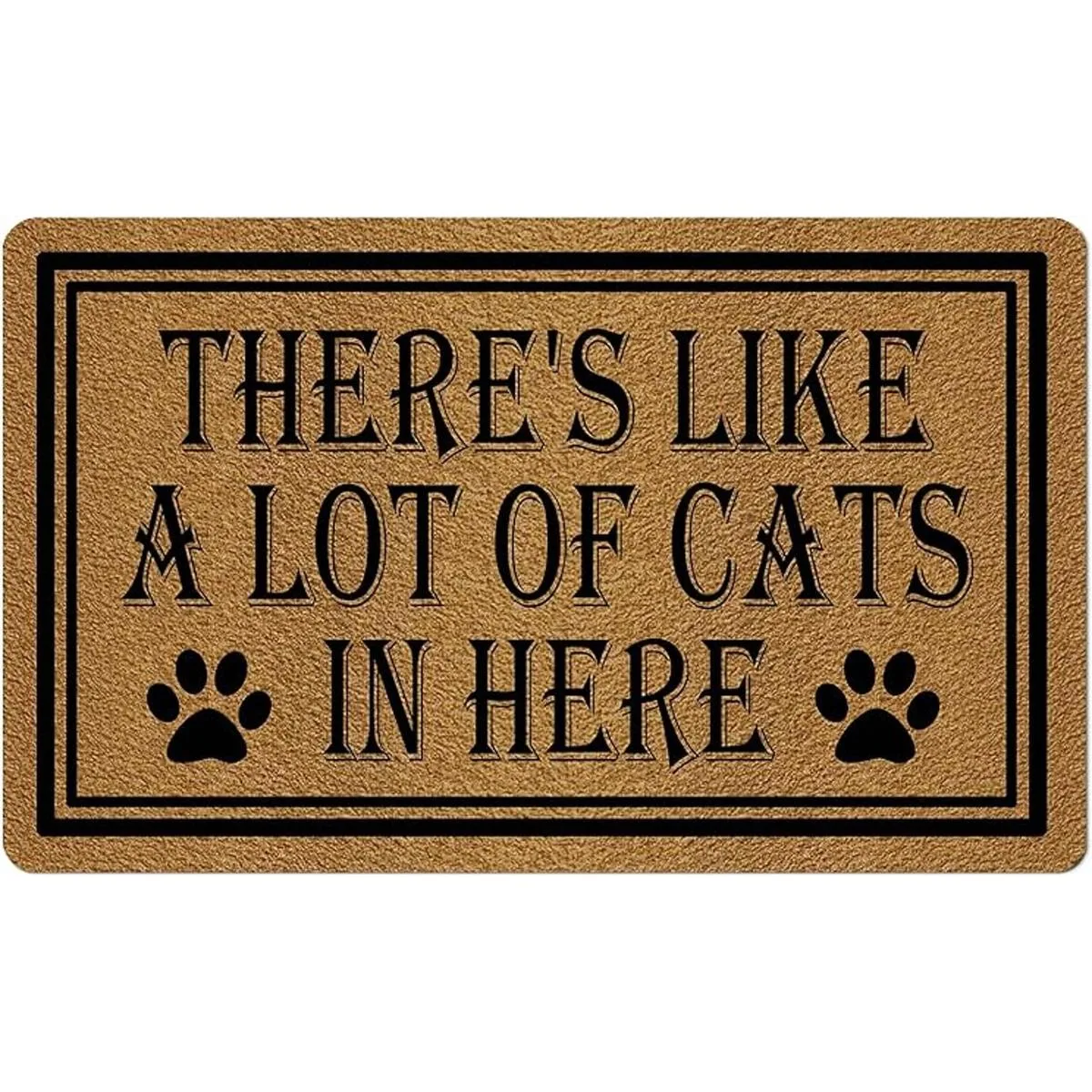 Felpudo de bienvenida 29.5 x 17.7 pulgadas, alfombrilla antideslizante divertida, personalizable, para decoración del hogar, para puertas de cocina, alfombras de entrada y alfombrillas hay como un montón de gatos aquí