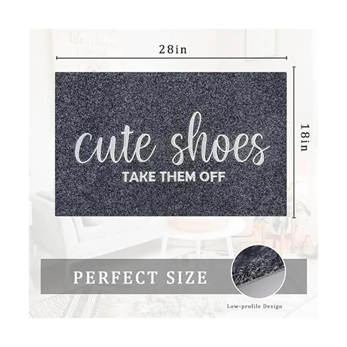 Felpudo ideal: nuestro felpudo está hecho de tela de polipropileno de alta calidad, ecológico, duradero y más fácil de absorber el barro, la suciedad u otros desechos de los zapatos. Nuestro tapete mide 18 x 28 pulgadas y 0.25 pulgadas de grosor para permitir que tu puerta pase fácilmente sin que se atasque o se enrolle.