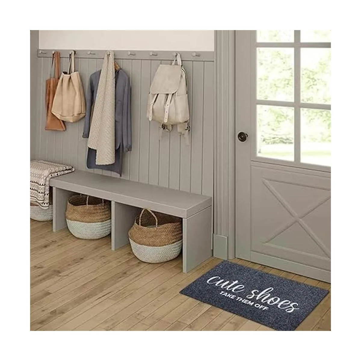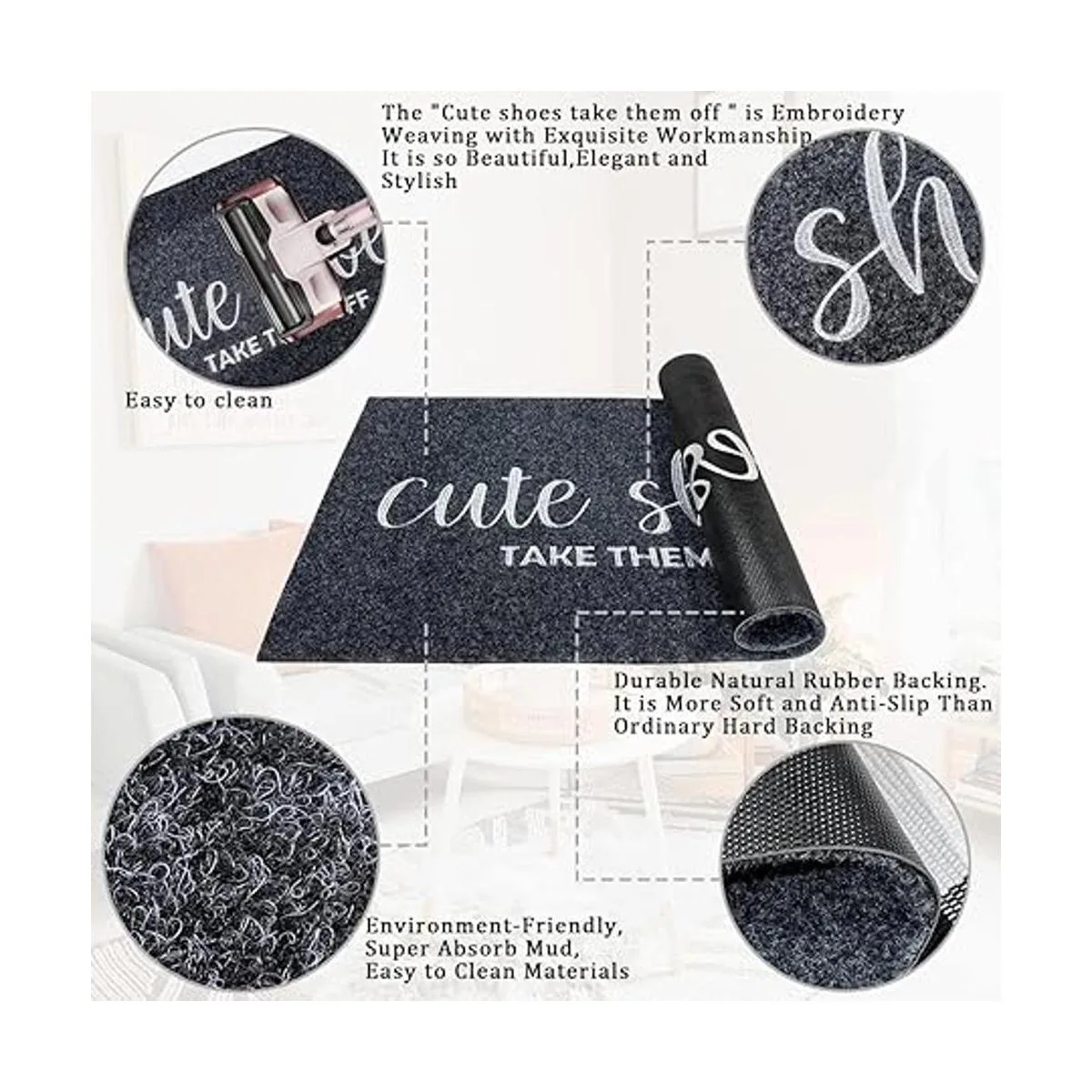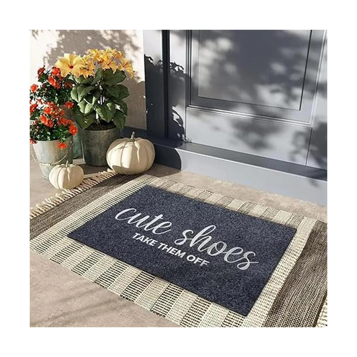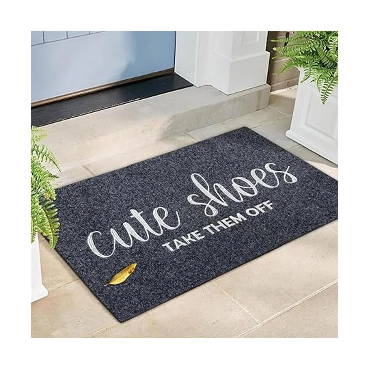 Felpudo de entrada para interiores y exteriores, tapete de goma gris para puerta delantera, bonito calzado para quitárselos para rascador de zapatos, antideslizante, fácil de limpiar, tapete de entrada para patio