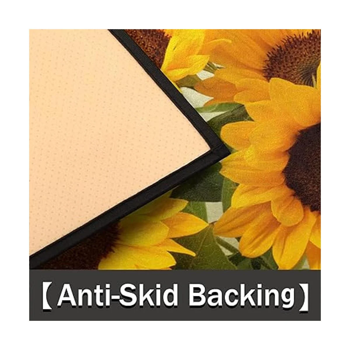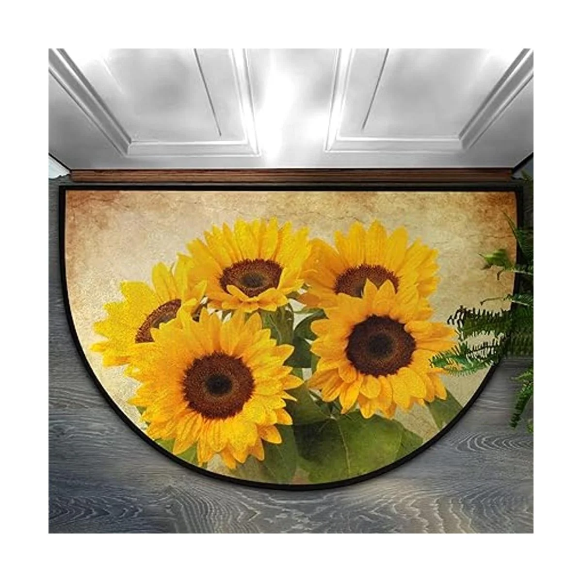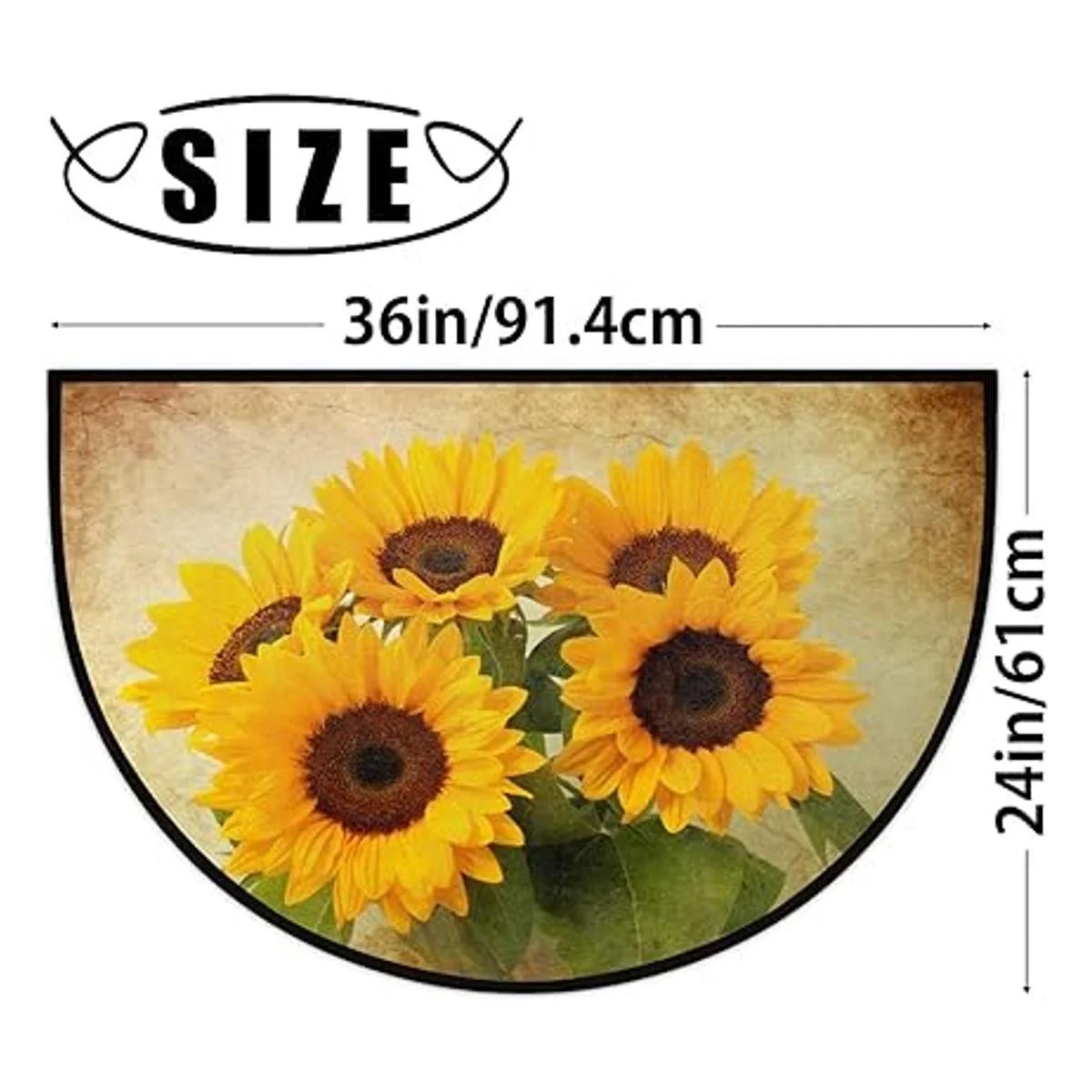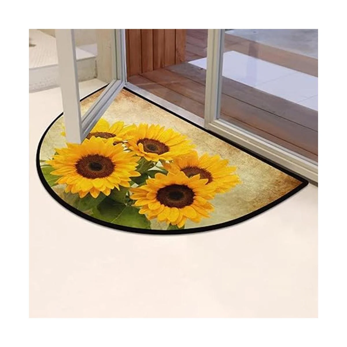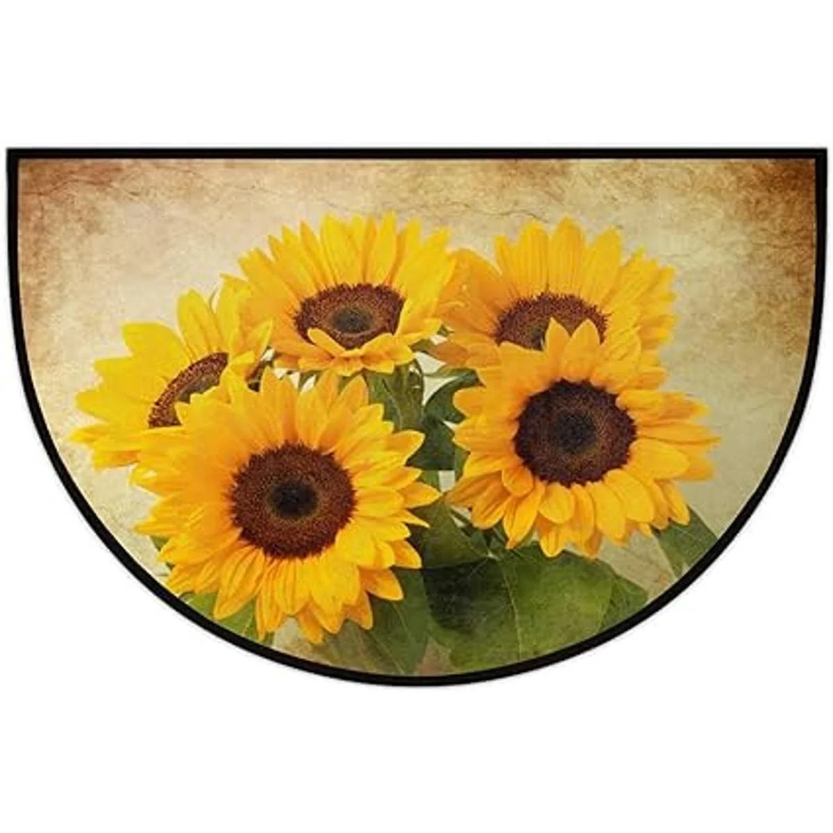 Felpudo de media ronda con diseño de girasol retro y diseño de girasol, antideslizante, de medio círculo, duradero, lavable, para sala de estar, dormitorio, interior y exterior, cocina, decoración del hogar, alfombra de media luna