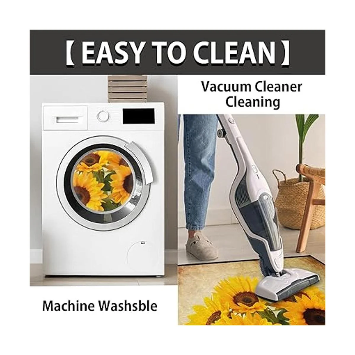 Fácil de cuidar: se puede lavar a máquina o aspirar regularmente para evitar que el polvo y las migas se fijen en las fibras. Evita la exposición continua a la luz solar. Se recomienda enrollar la alfombra en la dirección opuesta y dejar que se sienta durante unas horas para permitir que se quede plana. Las arrugas generalmente se aplanan dentro de 12 semanas después de desenrollar.