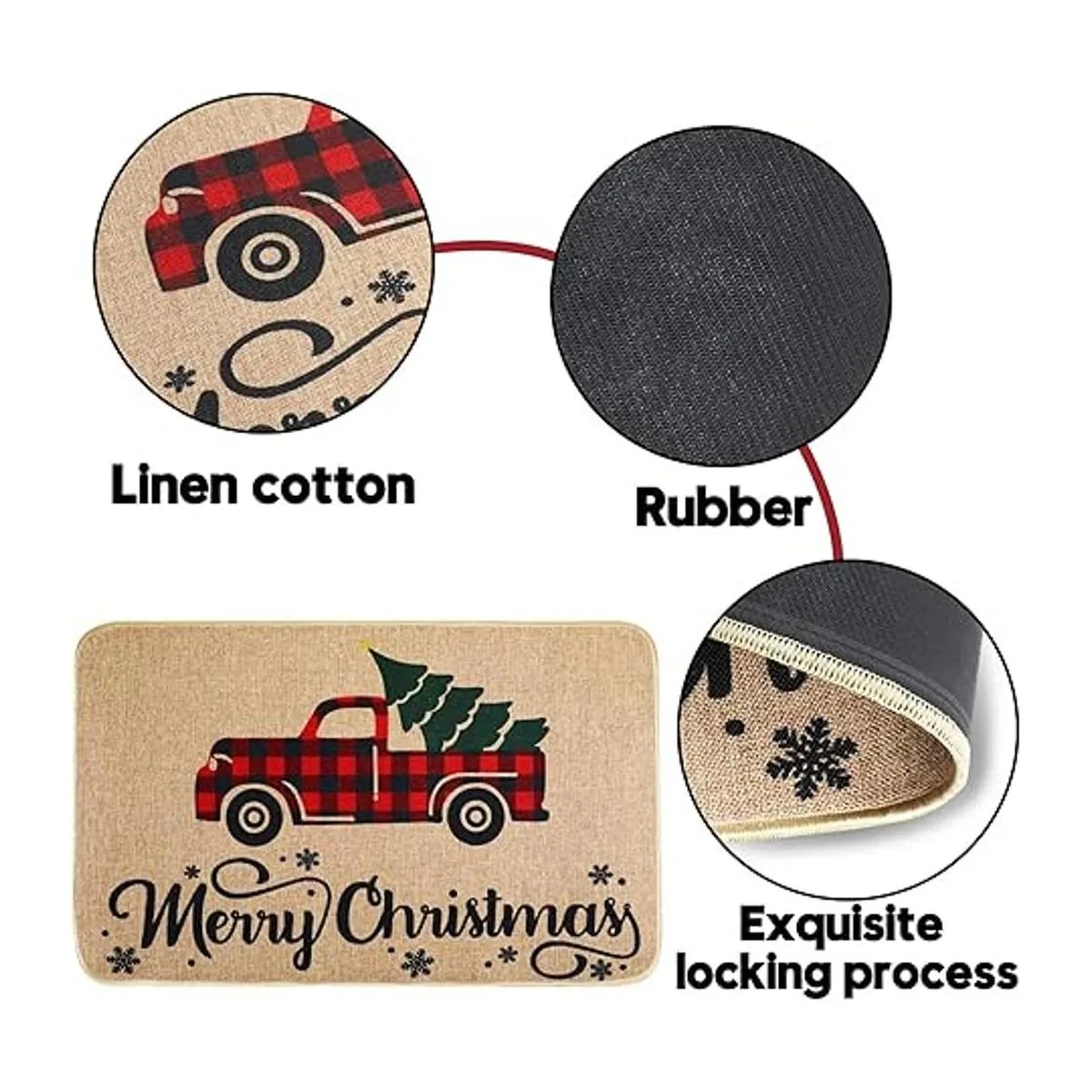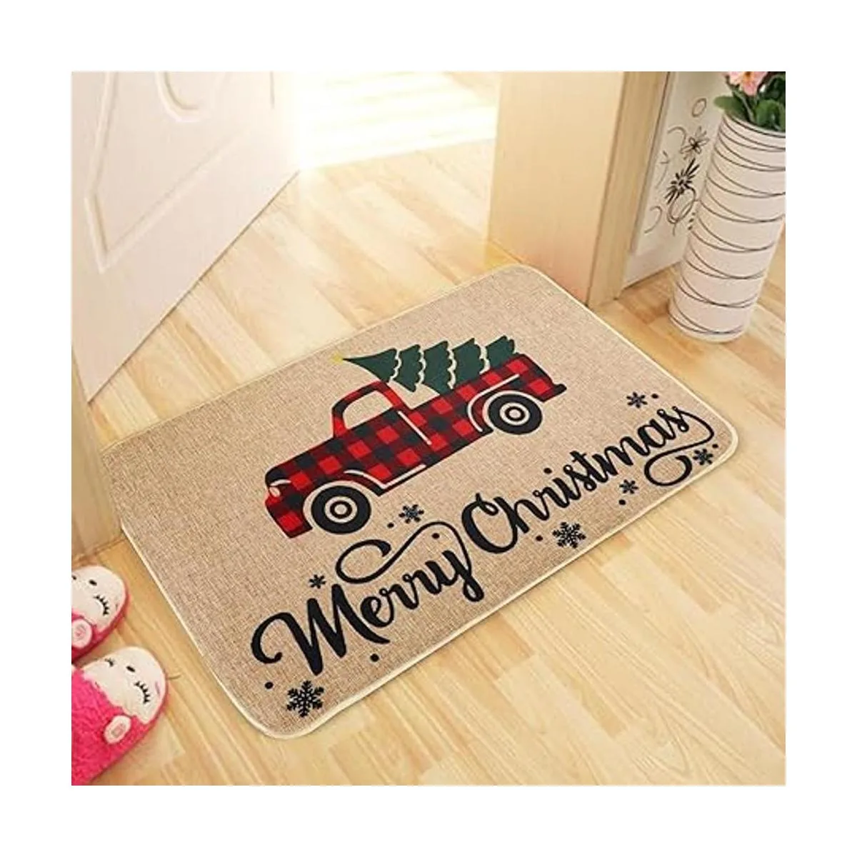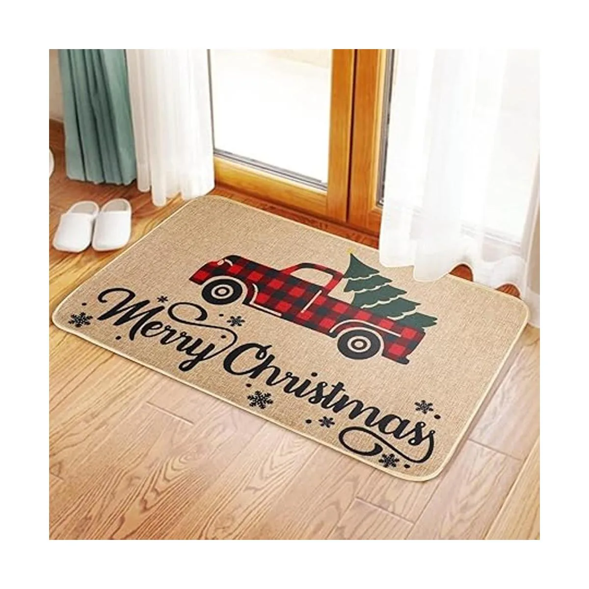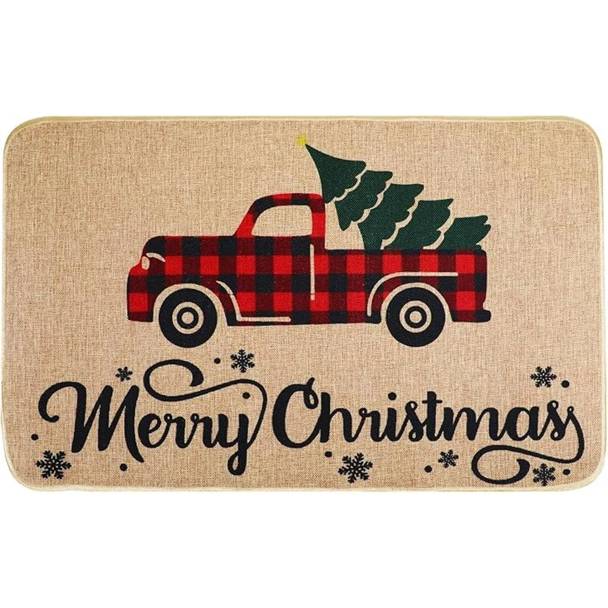 Felpudo de Navidad para puerta de Navidad, antideslizante y lavable, tapete de invierno con parte trasera de goma, diseño de copos de nieve, para interiores y exteriores patrón de coche rojo