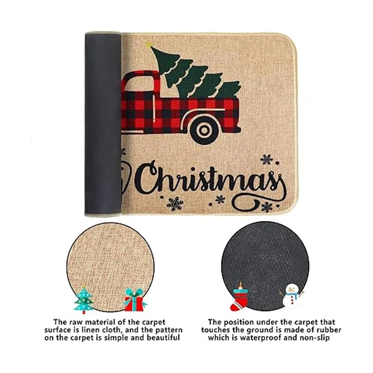 Diseño de temática navideña: nuestro felpudo de Navidad está diseñado con una imagen temática navideña: coche rojo, que te ayudará a aumentar el ambiente festivo, decoraciones festivas agradables y hermosas para interiores y exteriores