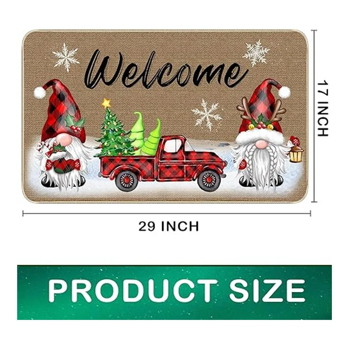 Felpudo decorativo de Navidad con diseño de gnomo Tomte de bienvenida, tapete antideslizante con respaldo de goma para interiores y exteriores, 29 x 17 pulgadas