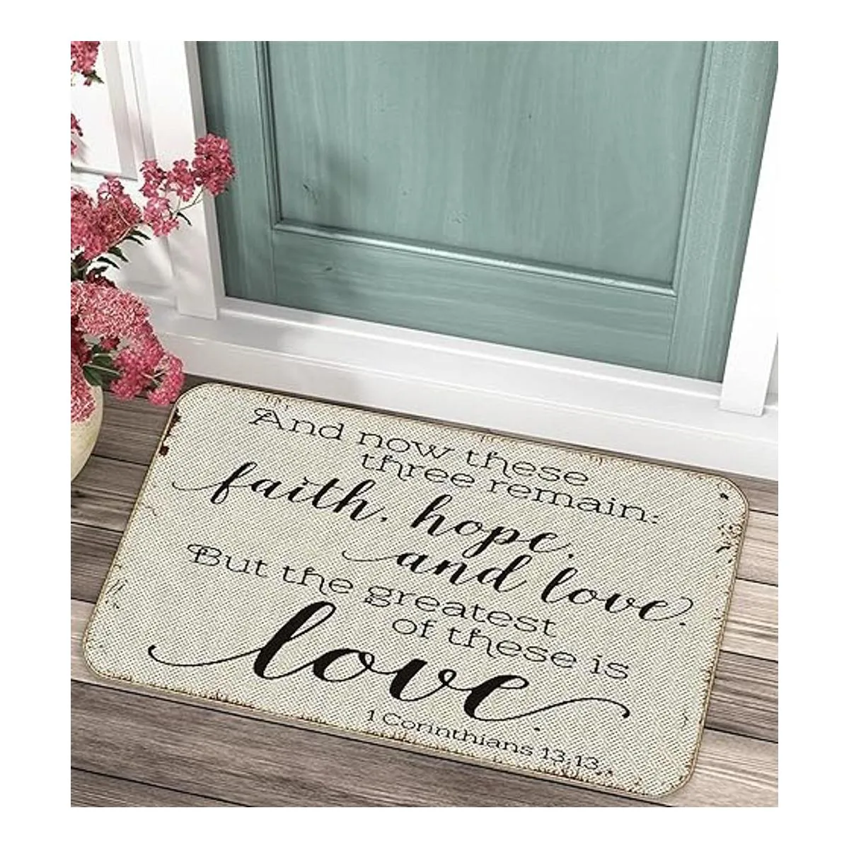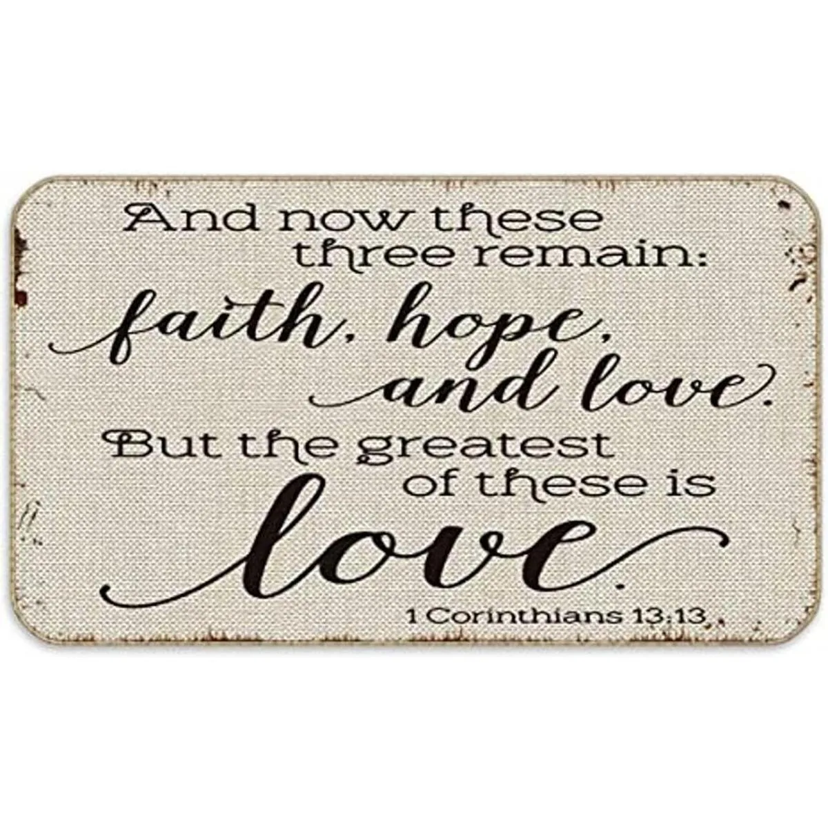 Felpudo inspirador con temática de la Biblia de esperanza y amor, para entrada frontal del porche, 17 x 30 pulgadas, decoración religiosa cristiana vintage de entrada, parte trasera de goma antideslizante