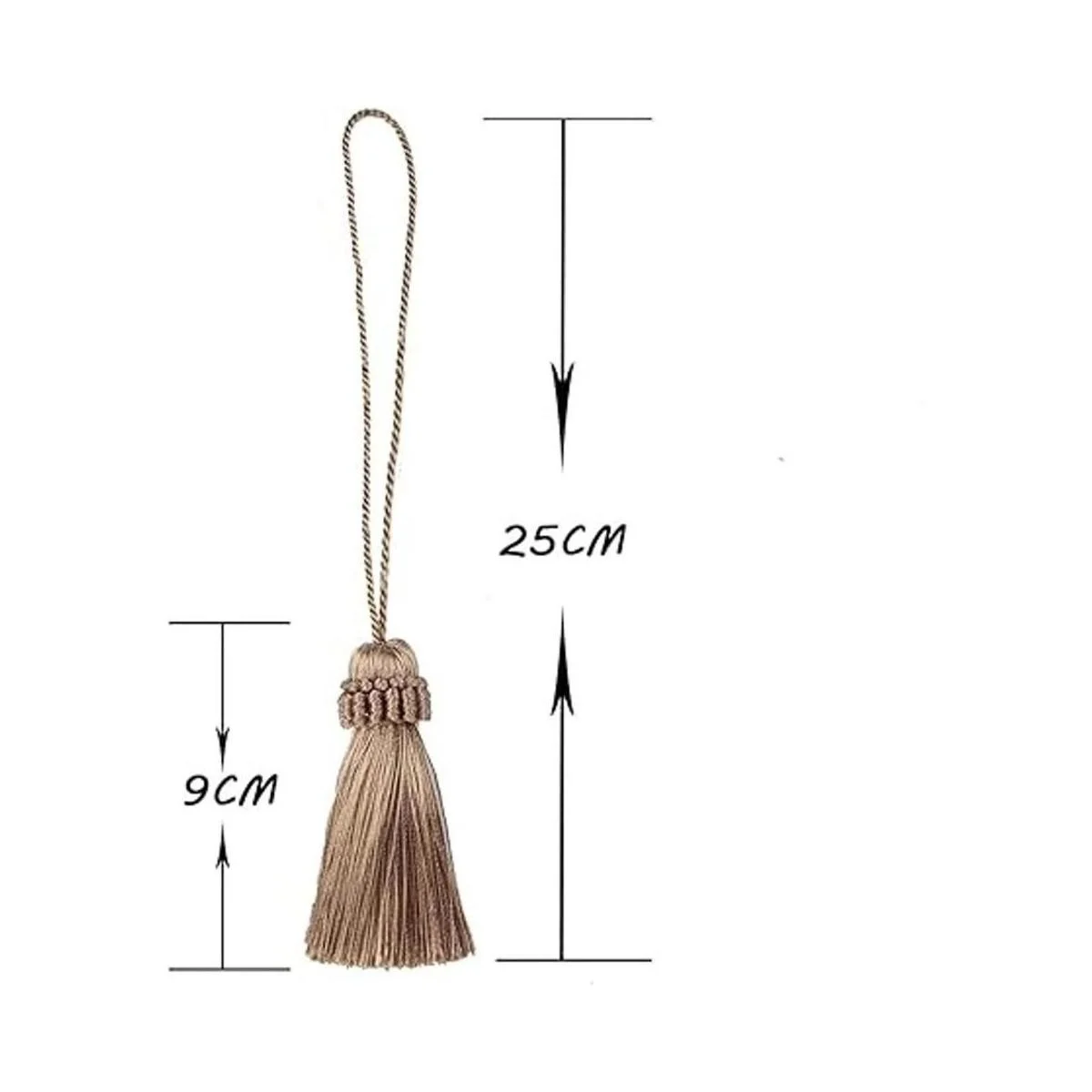 La borla de llave está hecha de poliéster, suave y agradable al tacto. Tamaño: alrededor de 9.85 pulgadas en total, borla de 3.55 pulgadas