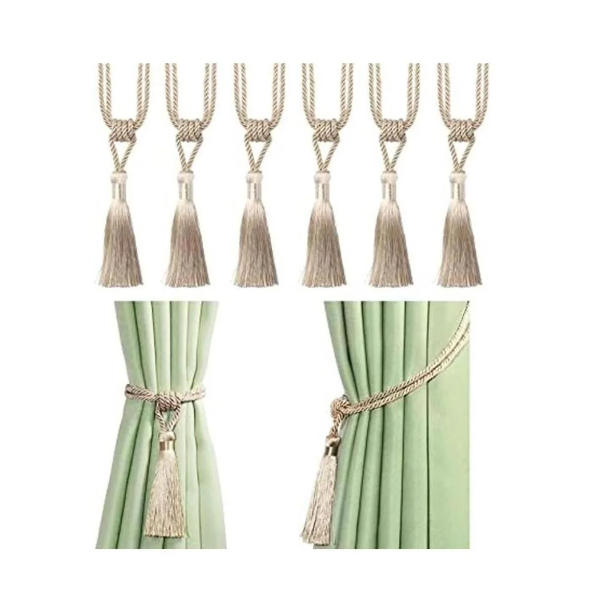 Fenghuangwu Abrazaderas de cortina con borlas, lazos de cuerda para soportes de cortina hechos a mano de poliéster (beige, 6 unidades)